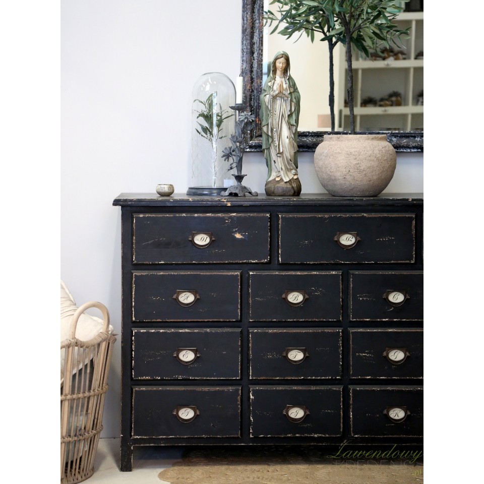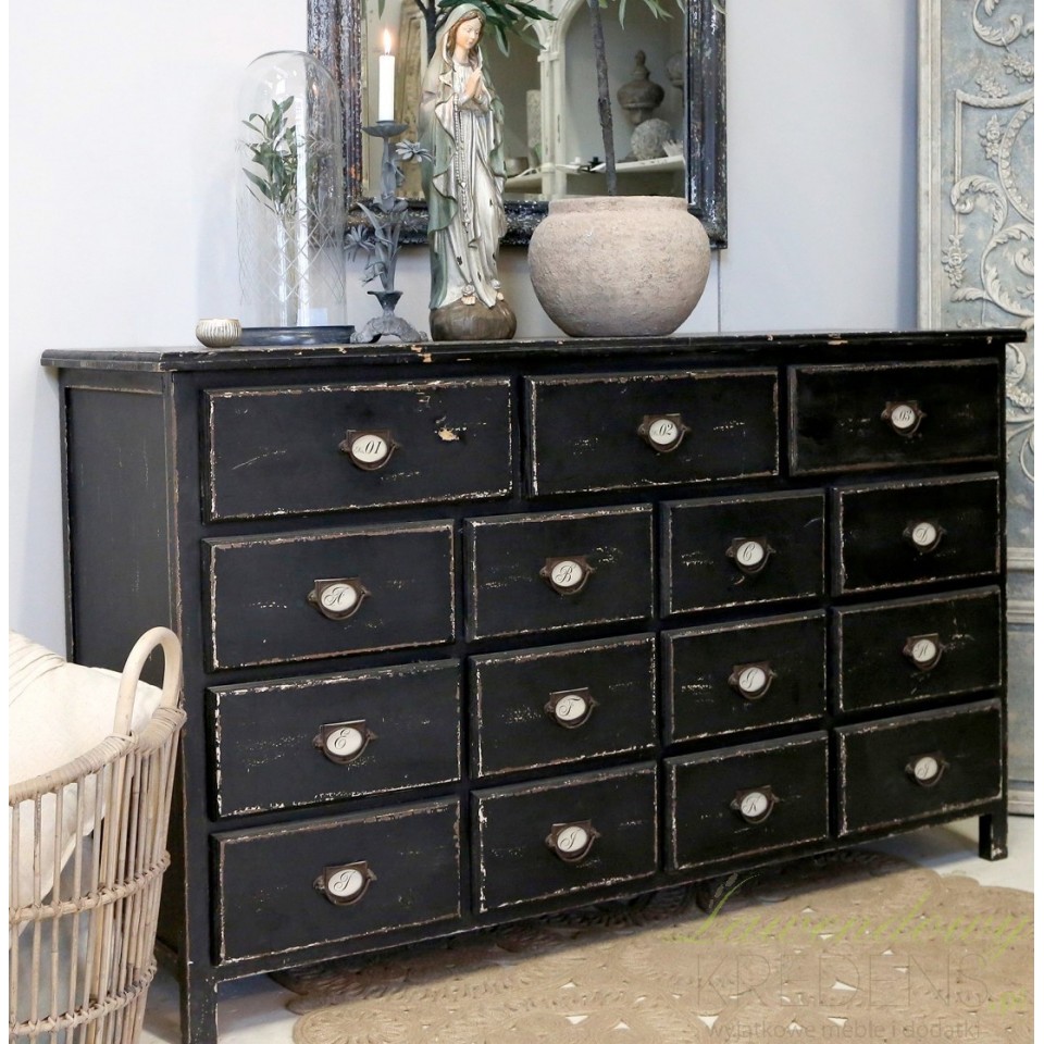 Niezaprzeczalnie piękna i wyglądająca na starą dzięki postarzeniom, komoda prowansalska w kolorze czarnym!