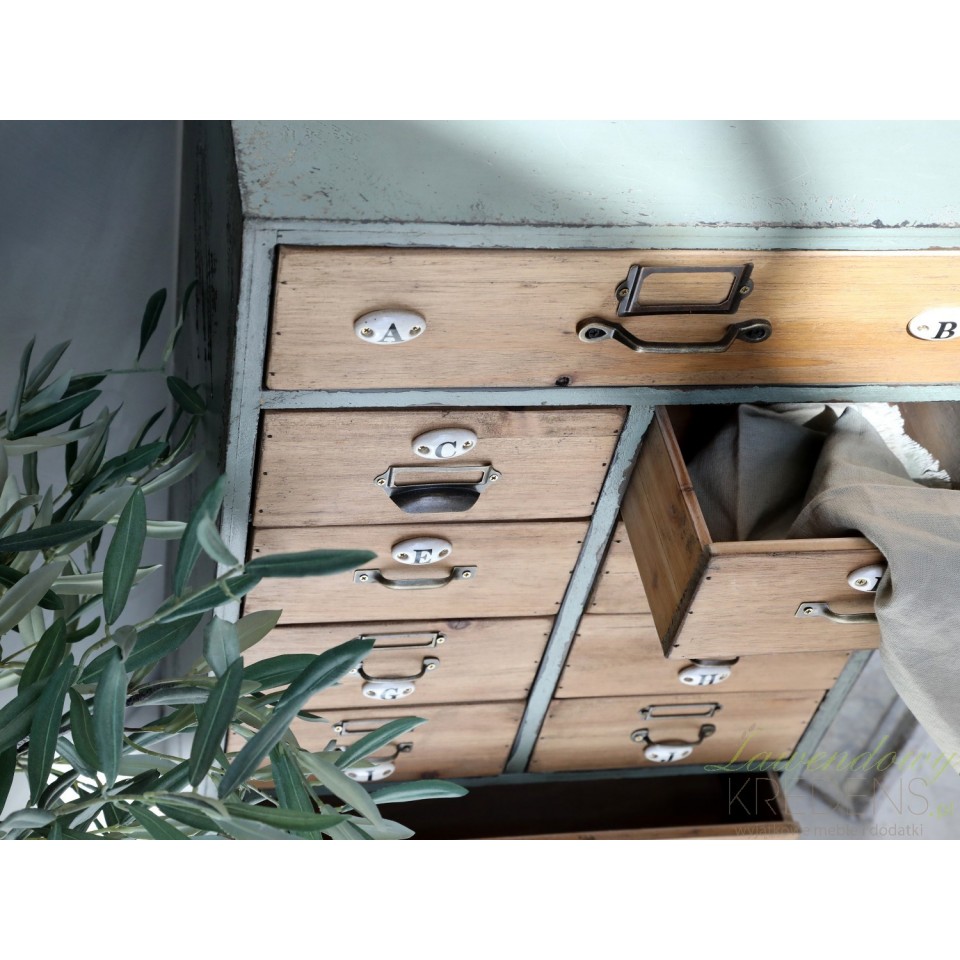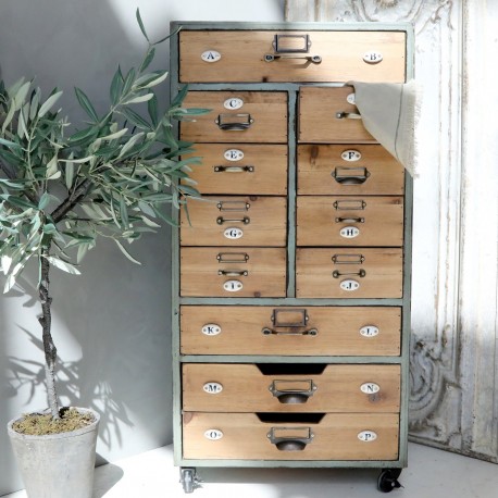 Metalowa komoda na kółkach w ciekawej stylistyce skandynawskiej, ozdobi Twoje wnętrze i zapewni odpowiednią ilość miejsca do przechowywania. Komoda Scandi Chic jest bardzo praktyczna dzięki dużej ilości szuflad oznaczonych numerami na białych tabliczkach i wyposażonych w metalowe uchwyty. Niezależnie od tego czy będziesz przechowywał w niej dokumenty, tekstylia czy zabawki, ta metalowa komoda na kółkach zapewni ład i porządek. Dzięki mobilnej komodzie znajdziesz miejsce na akcesoria rożnego typu!