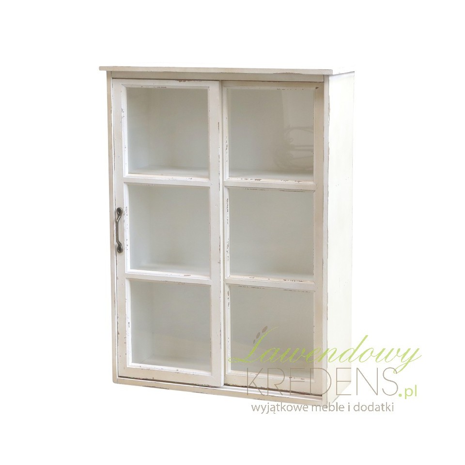 Prowansalskie meble od Chic Antique to wyjatkowa linia mebli dla wymagających klientów. Przeszklona szafka ścienna z przesuwanymi drzwiami wspomaga funkcjonalne wnętrza, byś mógł zawsze cieszyć się ładem i porządkiem w swojej kuchni, łazience lub w przedpokoju. Szafka jest postarzana, co daje efekt klimatycznej aranżacji. Takie szafki ścienne to meble, które pomagają spełnić aranżacyjne marzenia.