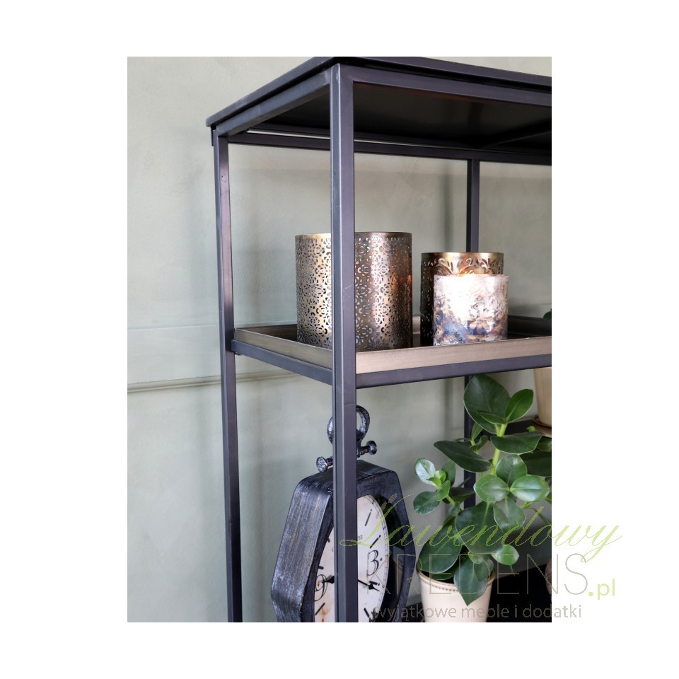 Metalowy regał industrialny z tacami w kolorze mosiądzu doskonale sprawdzi się w towarzystwie innych elementów wyposażenia wnętrza z kolekcji duńskiego producenta Chic Antique, będącego profesjonalistą w tworzeniu wysokiej jakości mebli i dodatków. Meble w stylu industrialnym to udane połączenie estetyki i praktyczności. Dzięki dziewięciu półkom o różnej wysokości, pomieści wiele przedmiotów. Na regale świetnie będą się prezentowały książki, ozdobne koszyki, ramki na zdjęcia i figurki. Industrialne meble szare, czarne i kolorowe to szeroki wybór – przekonaj się o tym już teraz, robiąc zakupy w naszym sklepie!