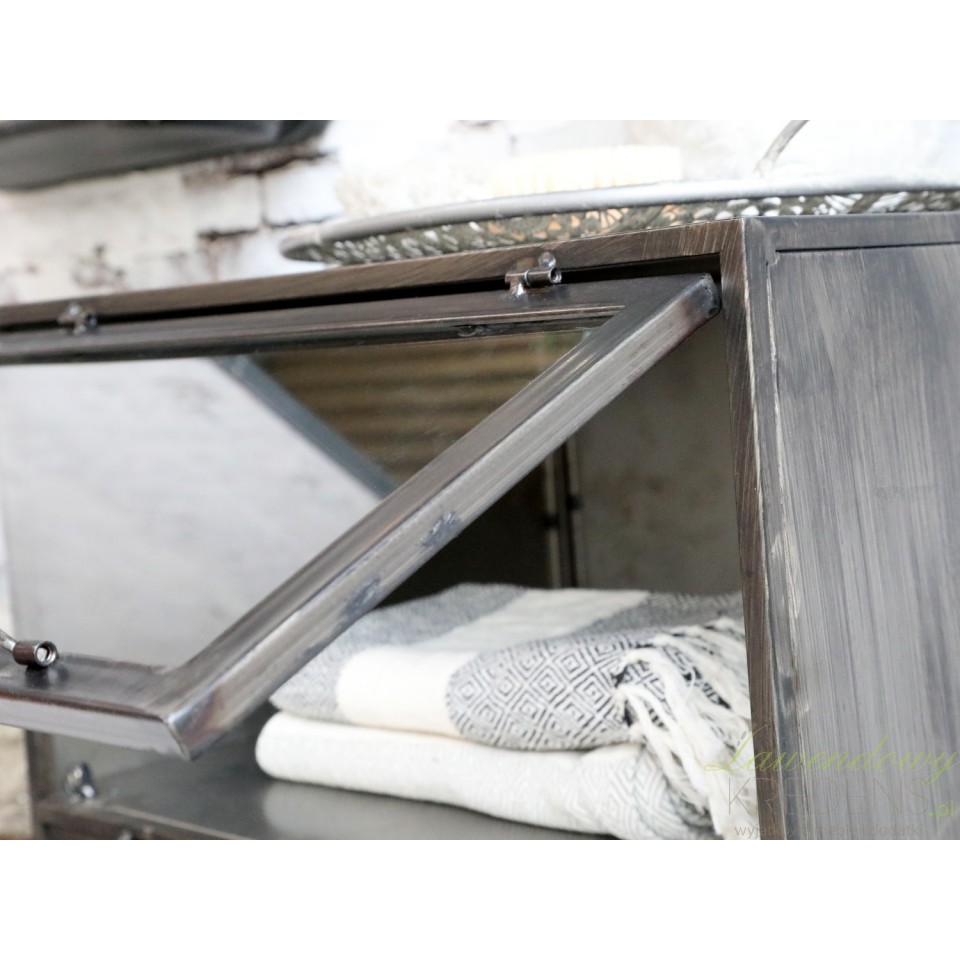 Komoda w stylu industrialnym wykonana z metalu i szkła jest częścią kolekcji Chic Antique - praktycznych i stylowych mebli do pokoju dziennego i przedpokoju.