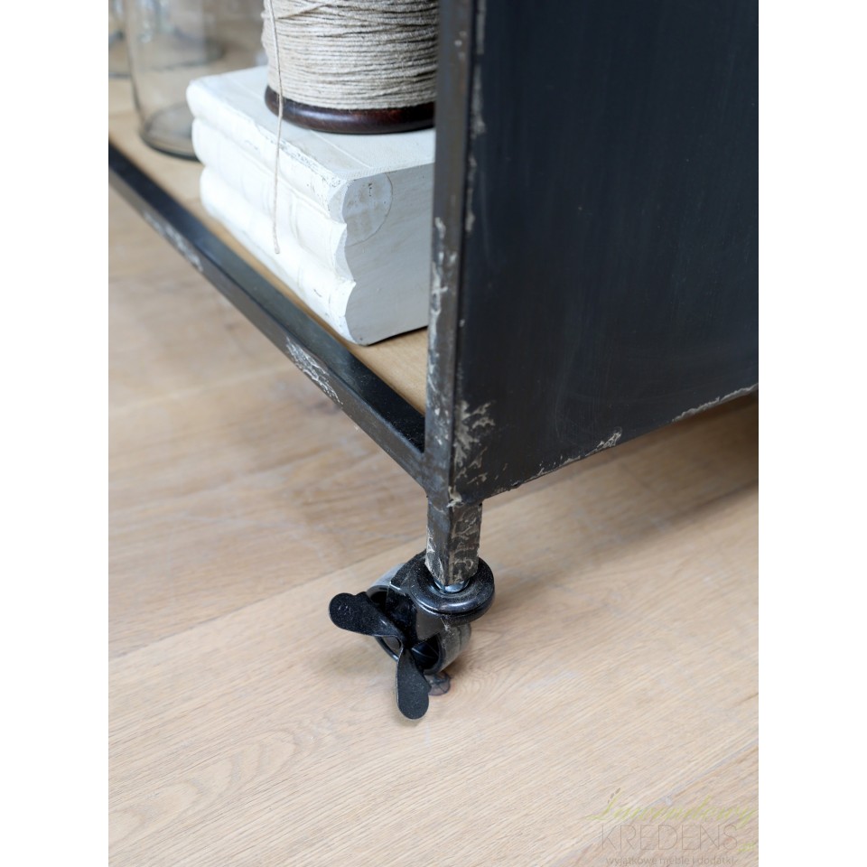 Ta stylowa komoda industrialna ze szkłem we wzory ma blat o długości ponad 140 centymetrów oraz drewnianą półkę w jasnobrązowym kolorze. Przeszklone szafki są dostosowane do przechowywania przedmiotów różnego rodzaju, dlatego mebel ten sprawdzi się w każdym zakątku Twojego domu, oferując miejsce na książki, ozdobne pudełka lub artykuły spożywcze w kuchni. Wybierając metalowe komody industrialne od Chic Antique możesz tworzyć niepowtarzalne aranżacje. Praktyczne meble w stylu industrialnym nie tylko lepiej zorganizują Twoją przestrzeń ale też dostarczą odrobiny modnego designu.