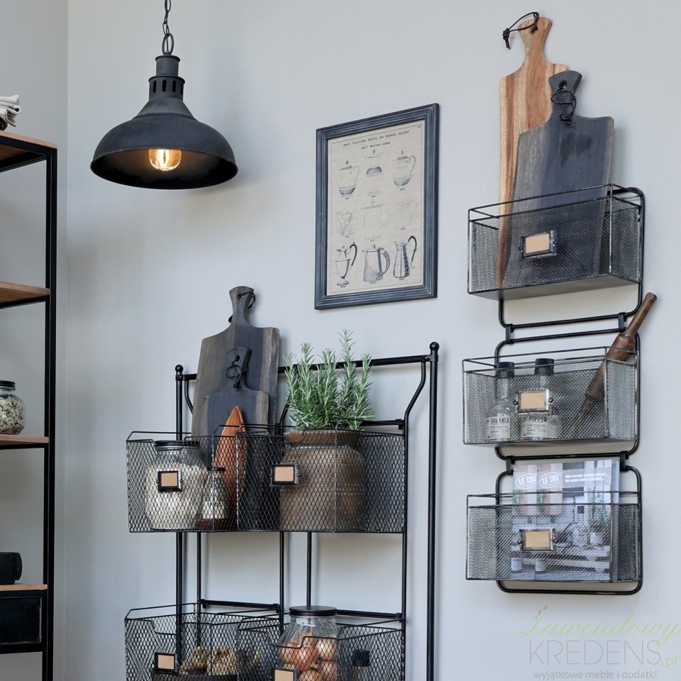 Uniwersalne do każdego pomieszczenia w domu - metalowe kosze ścienne industrialne Chic Antique są praktycznym dodatkiem do każdej kuchni, spiżarni, łazienki lub salonu. Dzięki minimalistycznemu stylowi pasują do większości aranżacji, zarówno współczesnych, tradycyjnych, jak i rustykalnych. Pionowa konstrukcja do zamontowania na ścianie uzupełnia każdą, nawet ciasną kuchnię z ograniczoną ilością miejsca na blacie. Wykorzystaj szafki ścienne industrialne wypełniając je podręcznymi akcesoriami. Takie meble w stylu industrialnym dają nieskończone możliwości!