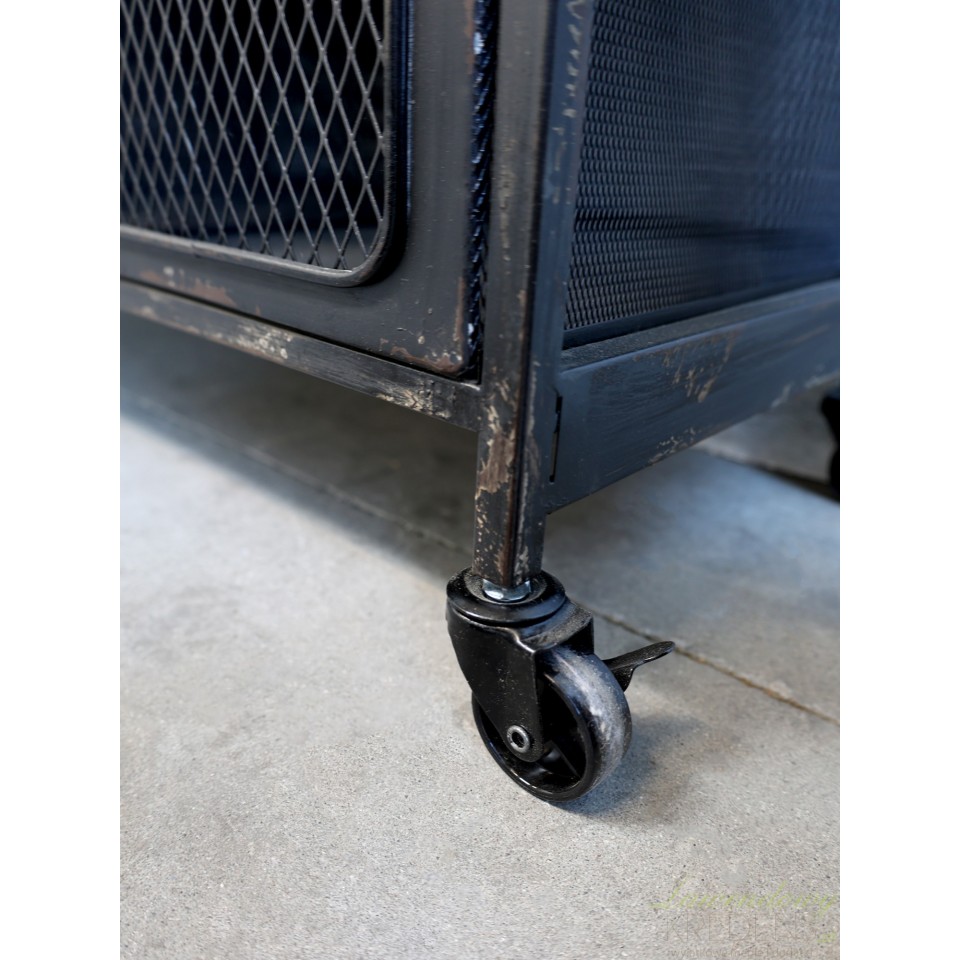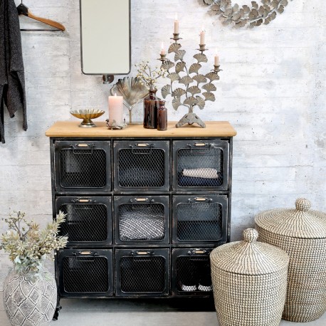 Brakuje Ci miejsca na dokumenty? A może przyda Ci się dodatkowa półka na akcesoria artystyczne, takie jak papier, pędzle i wiele innych przedmiotów? Komoda industrialna Chic Antique z koszami to mebel, w którym wszystko można schować. Za drzwiami z metalowej siatki świetnie wyglądają ozdobne dodatki. Metalowe komody industrialne na kółkach można przemieszczać bez żadnego wysiłku! Stabilne i bardzo solidne mebel w stylu industrialnym z dużą ilością miejsca do przechowywania i z ponadczasowym, klasycznym szykiem, to elementy wyposażenia wnętrza, które będą Ci towarzyszyły przez długie lata!