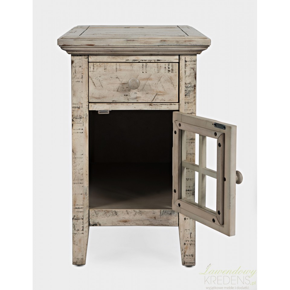 Szafka Nocna Rustykalna Avola Kremowa Livin Hill jest bardzo funkcjonalna. Posiada taśmowe zawiasy, regulowaną wysokość półek oraz wbudowane gniazdo i usb. W szufladzie schowasz ulubione drobiazgi, książkę czy okulary. Przeszklony front szafki dodaje szyku i elegancji. Na blacie możesz ustawić lampkę nocną, zdjęcie w ulubionej ramce lub inne dekoracje, które dopełnią wystrój sypialni.