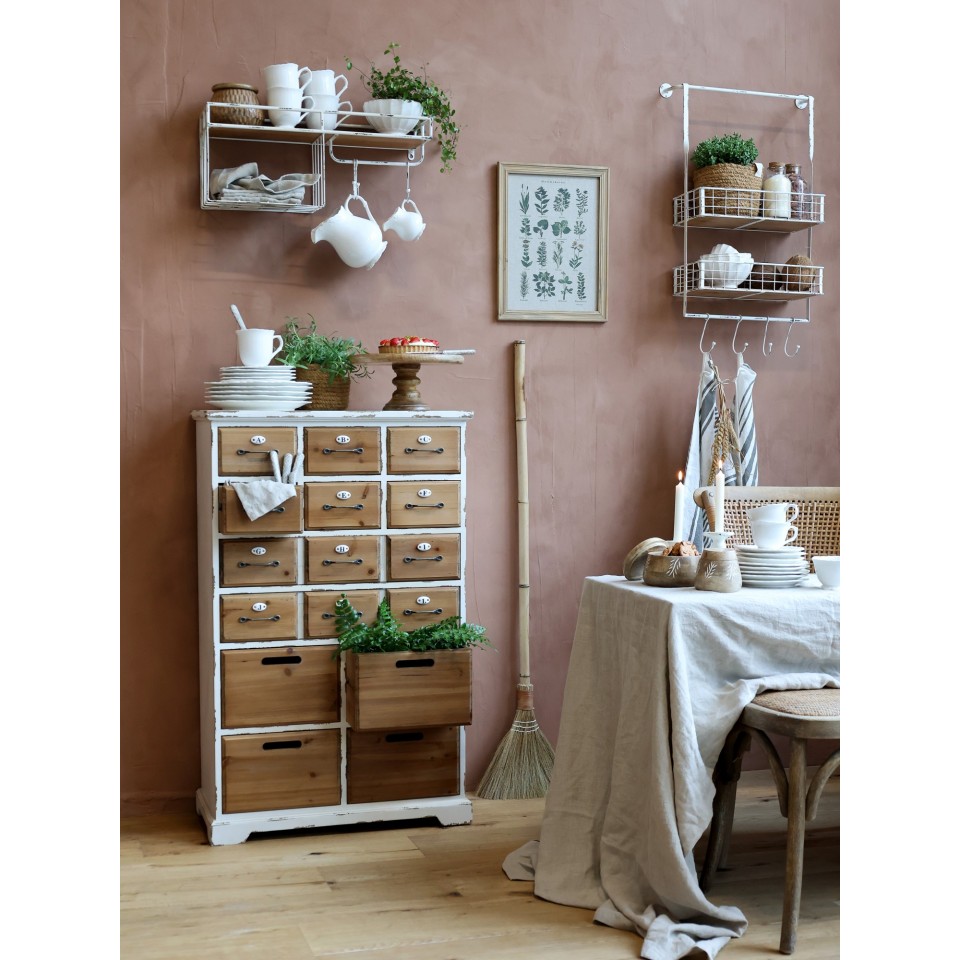 Marka Chic Antique to połączenie francuskiego romantyzmu z duńską dbałością o detale. Jej meble i dodatki są inspirowane dawnymi wnętrzami, w których każdy element miał znaczenie. Półka ścienna vintage z koszem i wieszakami doskonale wpisuje się w tę filozofię – jest praktyczna, a jednocześnie dekoracyjna, tworząc atmosferę przytulności i elegancji.