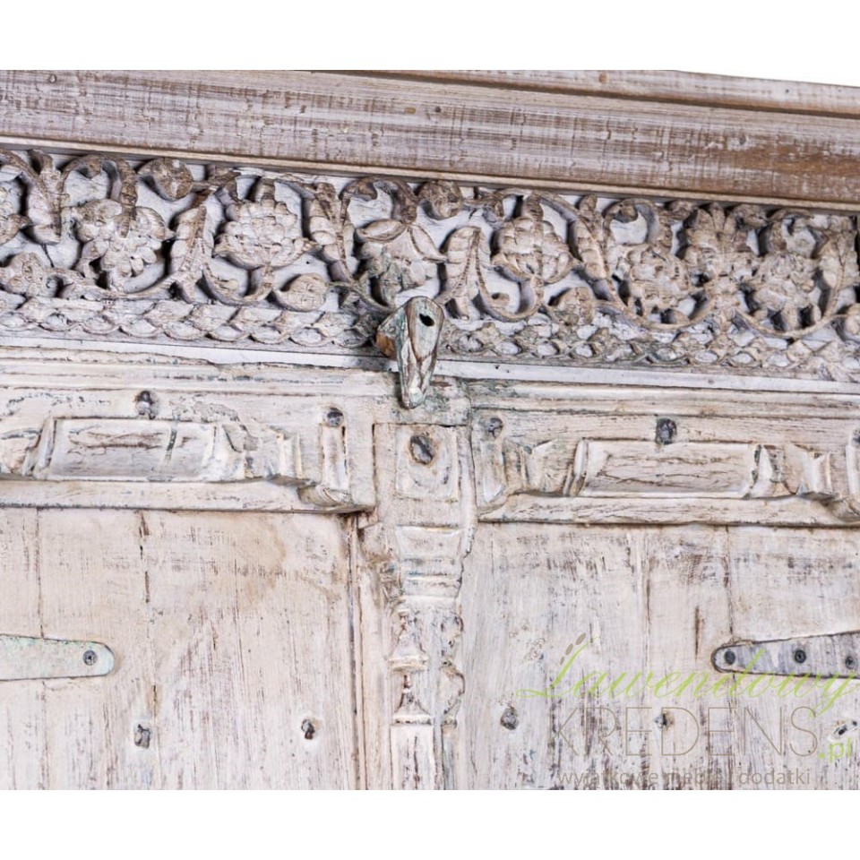 Szafa Belldeco Antique to unikatowy mebel wykonany z recyklingowanego drewna tekowego. Jej postarzana faktura, rzeźbione detale i naturalne barwy w odcieniach brązu i beżu tworzą niepowtarzalny klimat vintage. Idealna do wnętrz w stylu rustykalnym, boho lub prowansalskim – wnosi ciepło i elegancję dawnych czasów.