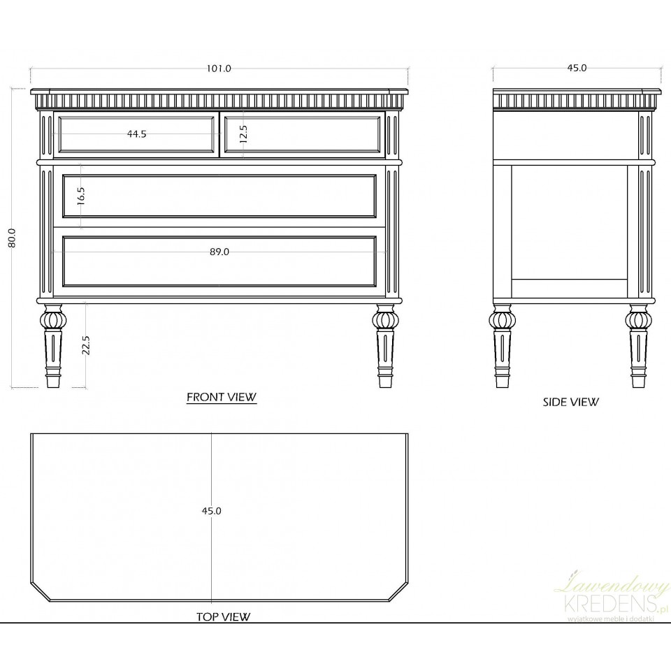 Sprawiająca, że wnętrze jest piękne i eleganckie - kremowa komoda z serii Leoni, posiadająca dwie duże i dwie małe szuflady. Ta francuska komoda to doskonały pomysł na efektowne zagospodarowanie przestrzeni w salonie i w sypialni. Kremowe meble doskonale będą współgrać z aranżacjami w różnych stylach, dlatego bez obaw możesz zamówić potrzebne meble z serii Leoni do swojego domu. Wybierz styl i klasę - komoda w stylu francuskim ma to coś!