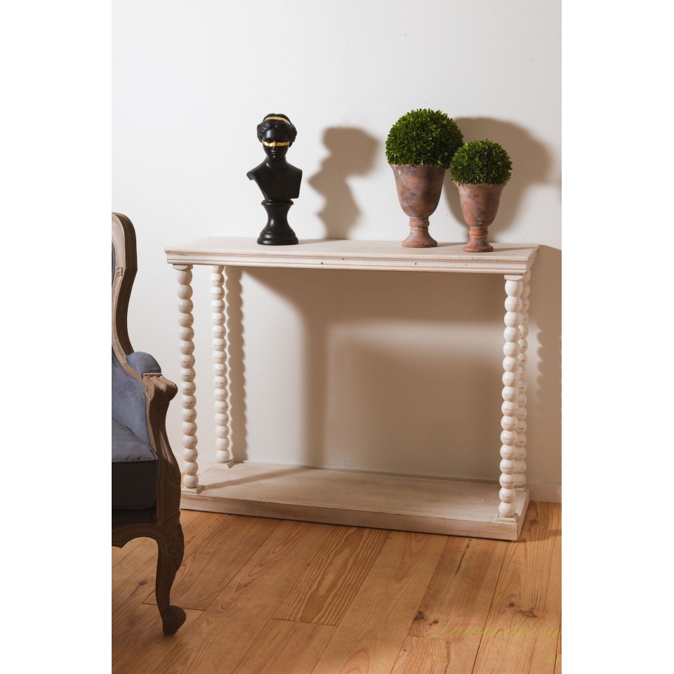 Rzeźbione i eleganckie nóżki, celowo przecierana powierzchnia oraz jasny kolor drewna - tak, rozpoznałeś to, to konsola prowansalska Kule!