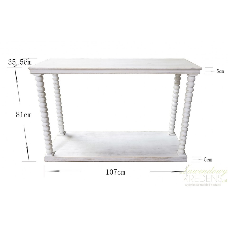 Trudno nie zakochać się w ładnych kształtach kremowej konsoli Kule. Funkcjonalna, oferuje mnóstwo miejsca do przechowywania rzeczy codziennego użytku oraz dekoracji. Detal, który nadaje jej charakteru to przepiękne, smukłe nogi wyglądające jak połączone ze sobą kule. Postarzenia obecne na całej powierzchni mebla sprawiają, że na pierwszy rzut oka wygląda jak drogocenny antyk. Takie meble w stylu prowansalskim polecamy umieścić przy wejściu do domu ( w przedpokoju), lub w salonie. W zestawieniu z kilkoma przedmiotami dekoracyjnymi lub ładnym lustrem oczaruje Twoich gości od pierwszego wejrzenia!