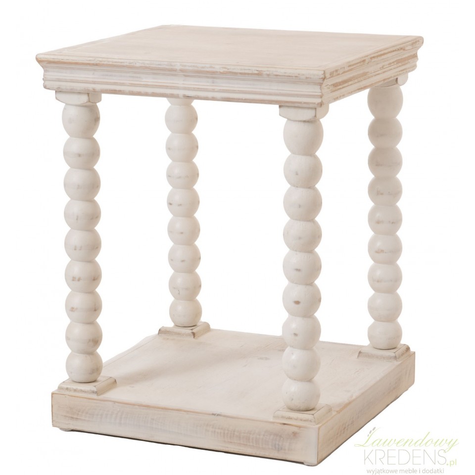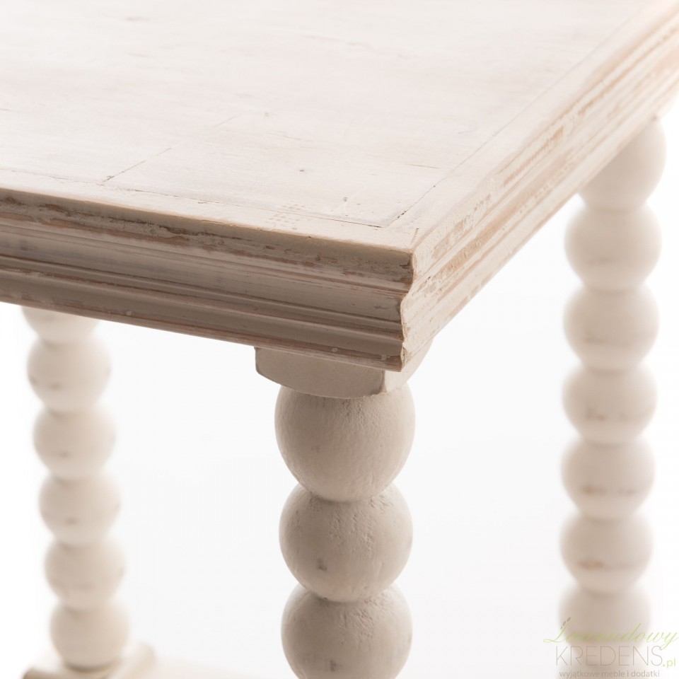 Kwadratowy stolik prowansalski Kule z pewnością nie pozostawi Cię obojętnym: łączy w sobie piękny kształt i jasną barwę, idealne do nadania stylu Twojemu salonowi.