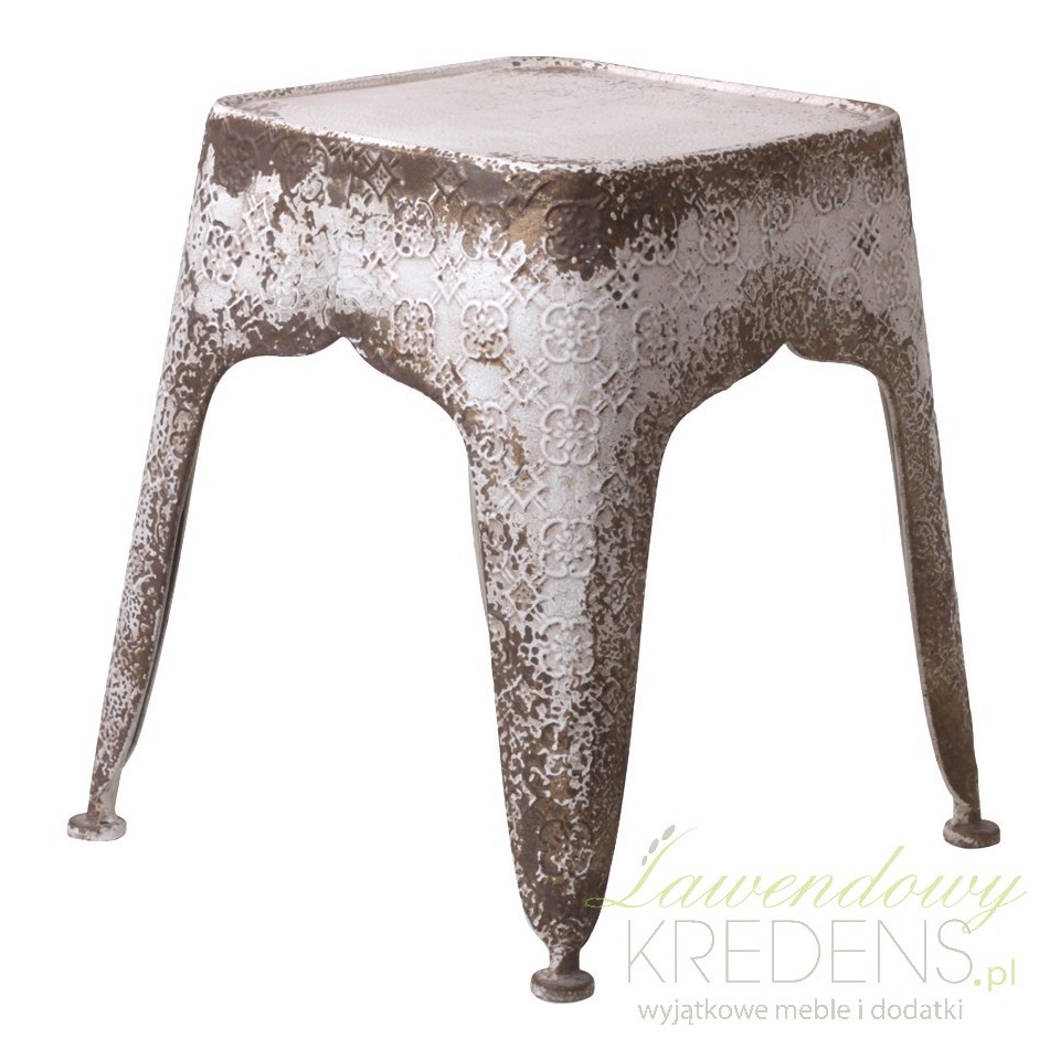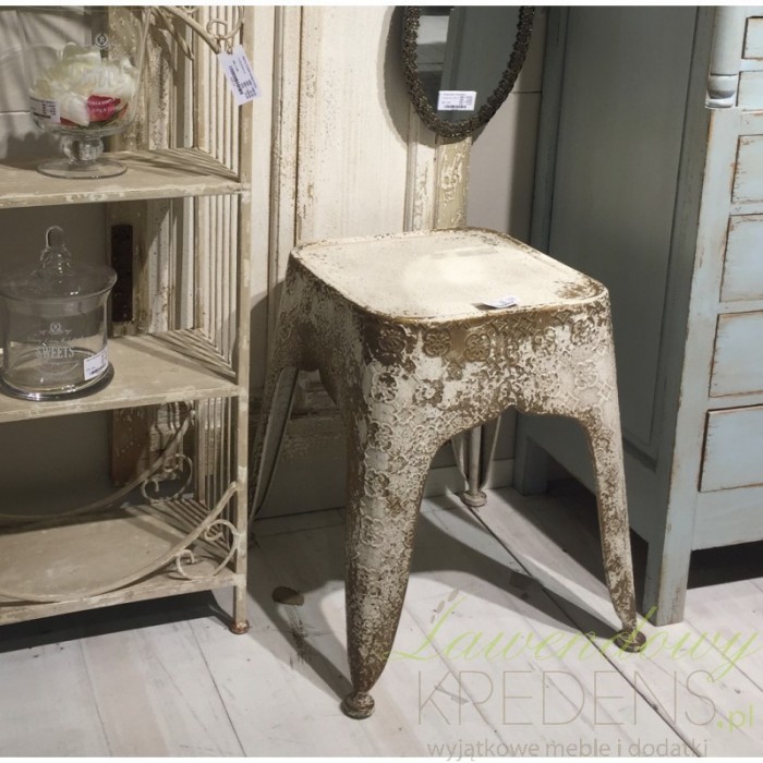 Ciekawie wystylizowany stołek metalowy, który dzięki postarzeniom wygląda jak z innej epoki! Niezwykła dekoracja!