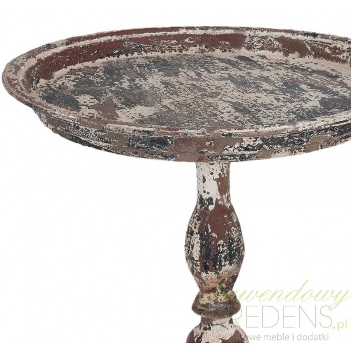 Meble shabby chic zachwycają swoją unikalną formą i wyglądem. Stolik boczny wykonany został z postarzanego metalu, który wygląda niczym ze starożytnych czasów. Stolik postarzany firmy Clayre & Eef ma okrągły blat i osadzony jest na solidnej, ładnie rzeźbionej nodze.