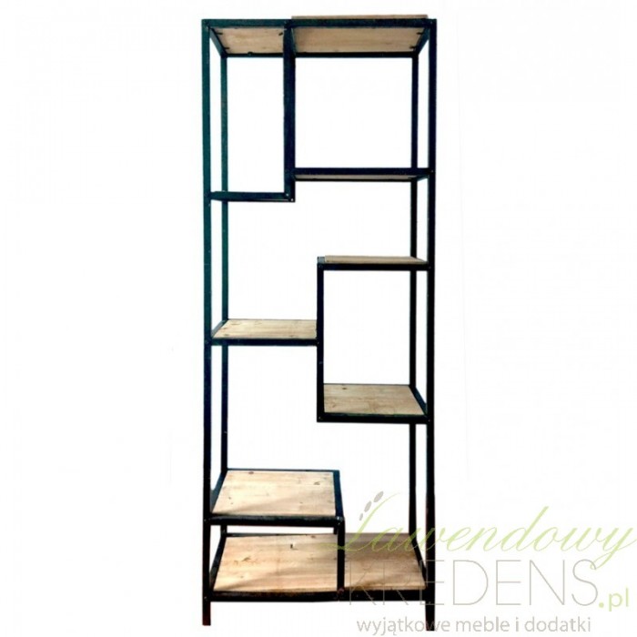 Regał loft to praktyczny mebel z wieloma półkami zamontowanymi w różnej konfiguracji.