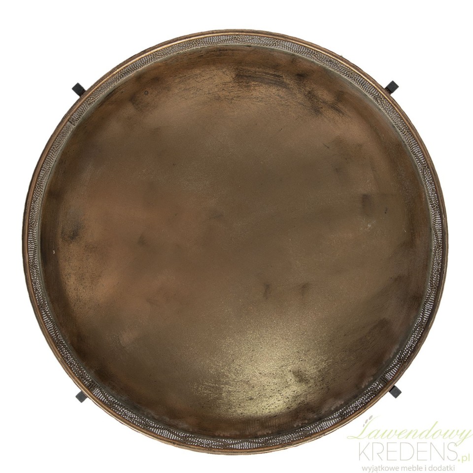 Metalowy stolik z ażurowym brzegiem Clayre & Eef to również świetny element dekoracyjny. Możesz wykorzystać go jako przedłużenie sofy, aby zawsze mieć filiżankę pod ręką lub na środku pokoju na miły wieczór z przyjaciółmi.