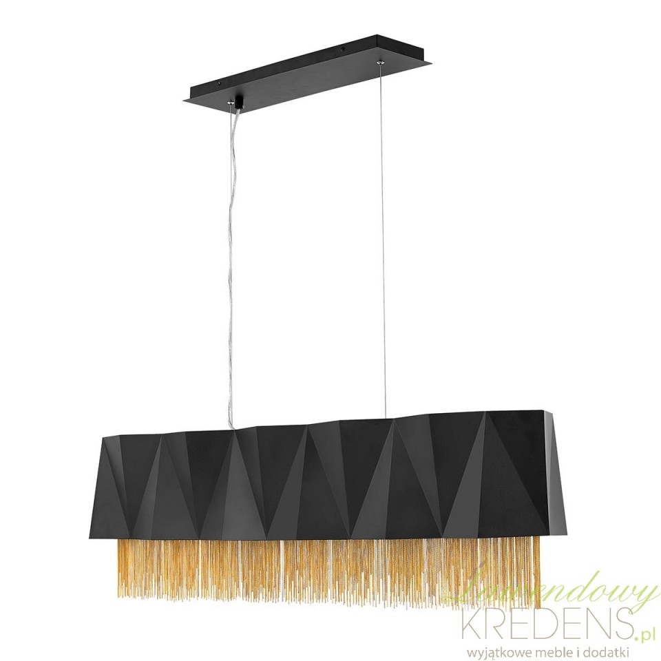 Wyraziste, geometryczne sylwetki lamp z kolekcji Zuma pięknie kontrastują z delikatnymi, zawieszonymi u ich spodu jubilerskimi łańcuszkami, które subtelnie zmiękczają ostre kąty tych zjawiskowych opraw oświetleniowych. Modne połączenie aksamitnej, matowej czerni ze srebrem lub złotem podkreśla elegancki i luksusowy charakter tych lamp. Mocowanie na cienkich stalowych linkach sprawia, że zdają się one swobodnie unosić w powietrzu, dodając całości lekkości i finezji.