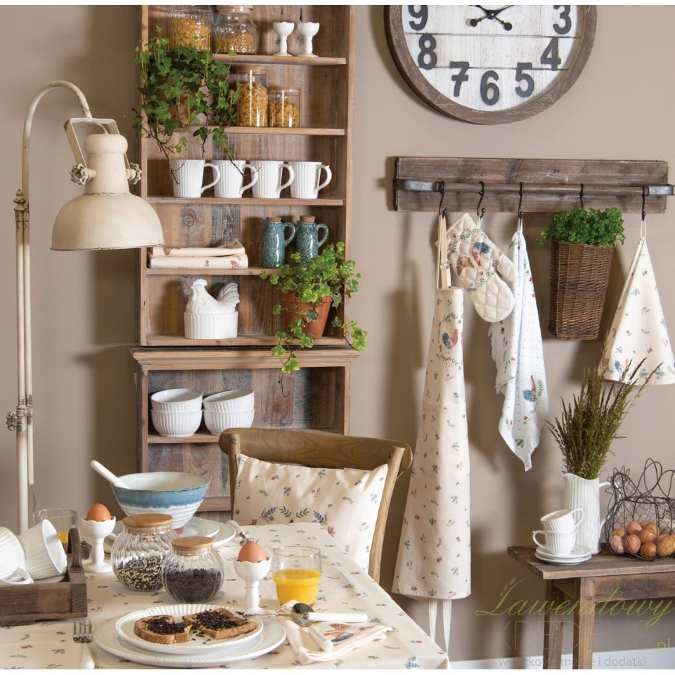 Stworzenie idealnej zastawy stołowej to jedno z najważniejszych wyzwań w jadalni i w kuchni. Zastosuj obrus prowansalski Farmhouse, a niemożliwe szybko okaże się możliwe! Dodatki prowansalskie takie jak bawełniany obrus w kolorowe kwiaty i koguty sprawi, że zawsze będziesz gotowy przyjąć niezapowiedzianych gości. Mamy świetną wiadomość, ponieważ obrusy w stylu prowansalskim od Clayre & Eef są dostępne również w wersji pasującej na okrągły stół. Wszystkie tekstylia, których potrzebujesz, a w tym serwetki, bieżniki i obrusy znajdziesz w naszym sklepie online!