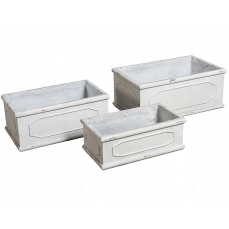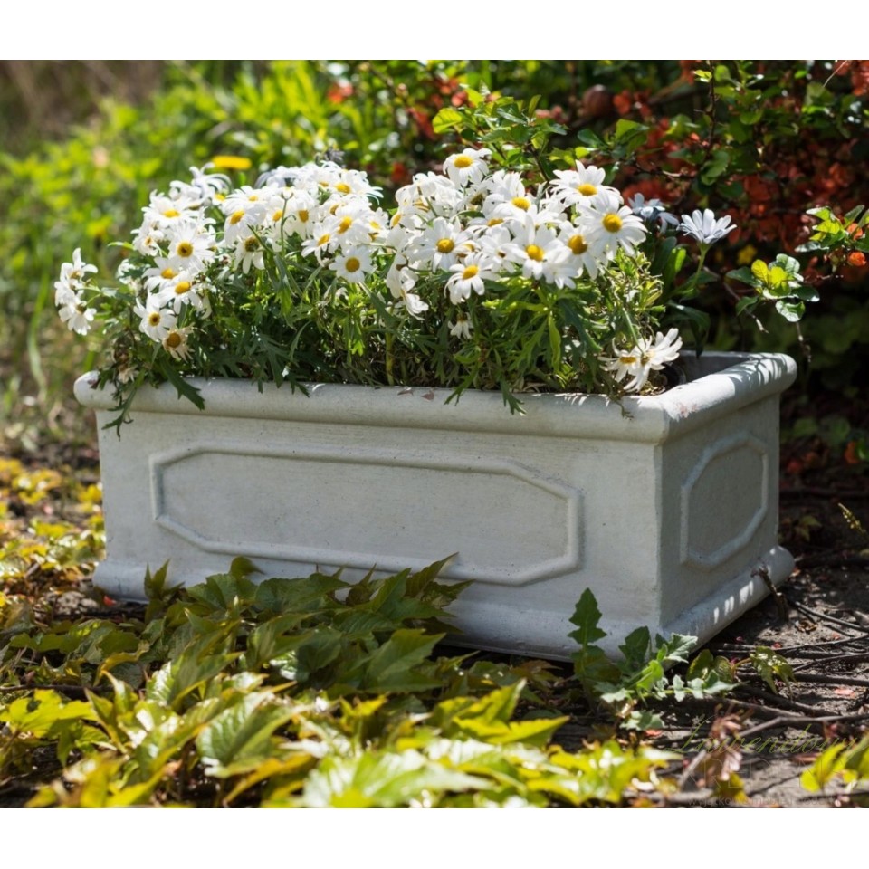 Prostokątna, duża osłonka Belldeco wykonana z cementu i włókien szklanych ma koloro antycznej bieli.