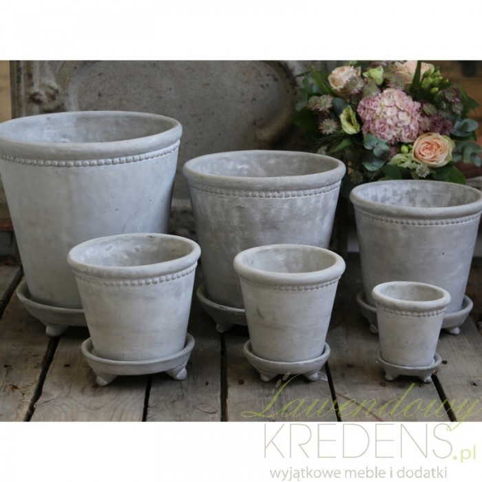 Mrozoodporna szara osłonka na doniczkę firmy Chic Antique z podstawką!