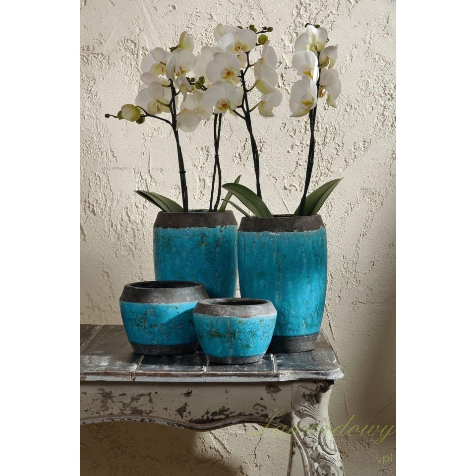 Urocza Osłonka Azzurro Belldeco w stylu prowansalskim. Na jej środkowej części o przepięknym kolorze znajdują się liczne spękania.