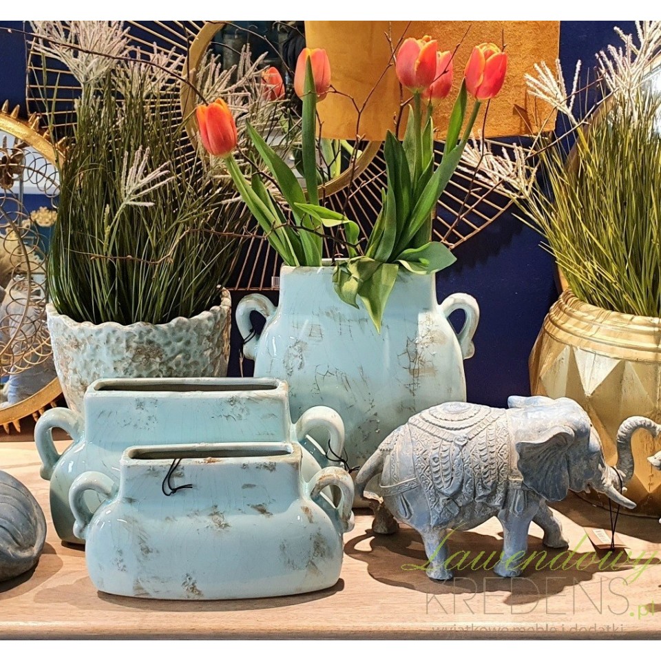 Urocze, ceramiczne osłonki Belldeco Azzurro, które mogą zostać wykorzystane także jako wazony na kwiaty lub dekoracja. Osłonki mają szkliwioną, miejscami chropowatą poierzchnię, pokrytą pajączkiem spękań. Nietypowy kształt osłonek przypominający antyczny styl dodaje im oryginalności.