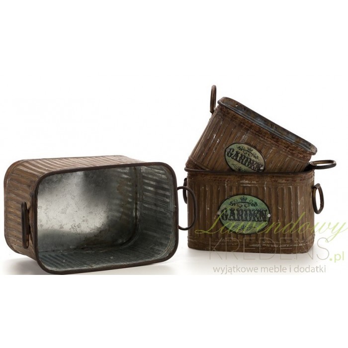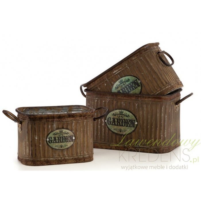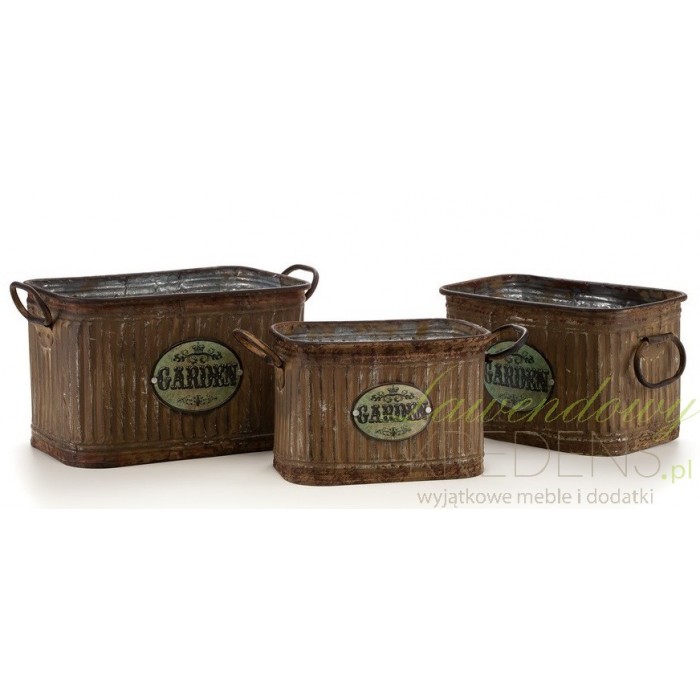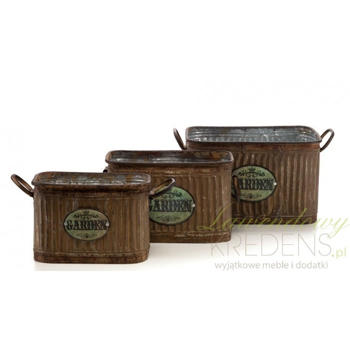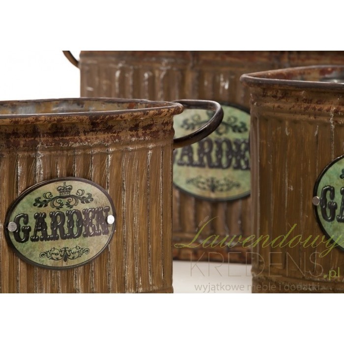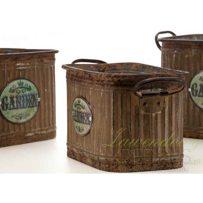 Pięknie prezentujące się w ogrodzie lub na domowym parapecie osłonki w stylu prowansalskim, wykonane z metalu.