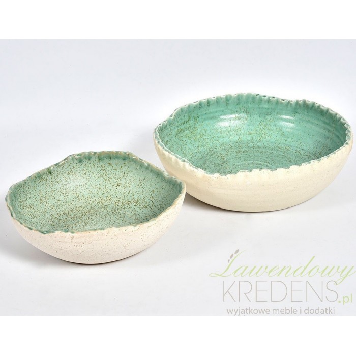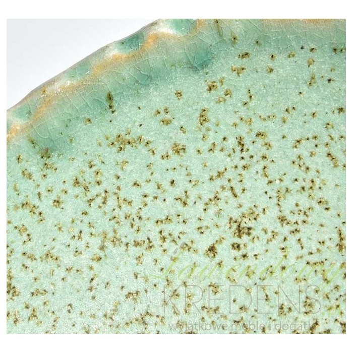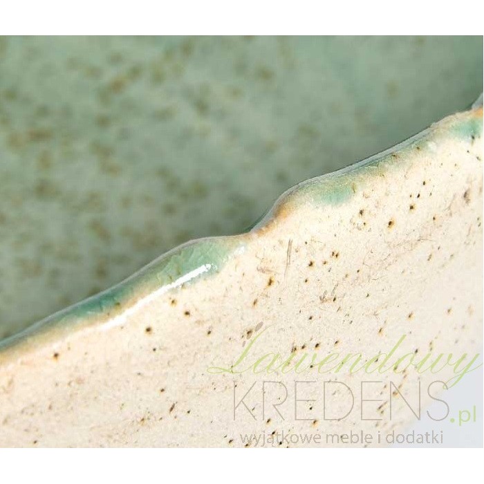 Ceramiczna misa Belldeco ma okrągły kształt i nierówną, finezyjną krawędz. Od środka ma śliczny zielony kolor z brunatnymi, ozdobnymi kropeczkami, a od zewnątrz ma przyjemny kremowy kolor. Misa Belldeco jest dość duża i idealnie posłuży jako taca na owoce lub małe drobiazgi jak na przykład biżuteria.