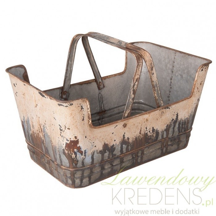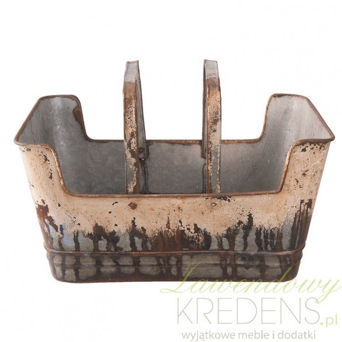 Metalowy kosz z parą metalowych uchwytów to wyjątkowy projekt marki Clayre&Eef. Kosz wygląda jakby był nie do końca pomalowany, u dołu ma widoczne zacieki farby i przebarwienia lecz to tylko celowy efekt postarzenia. Duże uchwyty umożliwiają łatwe przenoszenie kosza w ręku lub zmienianie jego pozycji. Kosz idealnie sprawdzi się jako osłonka na doniczki wewnątrz lub w ogrodzie ale możesz też wykorzystać go jako gazetnik w salonie, pojemnik na drobiazgi - sam zdecyduj!