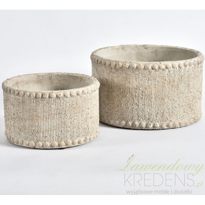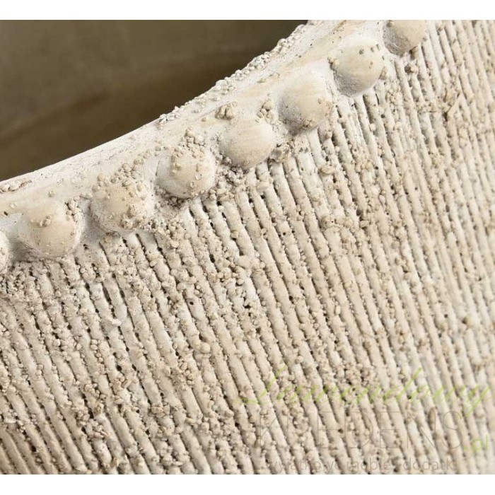 Osłonka Belldeco ma okrągły kształt i wykonana jest z betonu. Jest niska i ma jasny kolor oraz ozdobne wypukłe koraliki na górze i dole. Osłonki na doniczki Belldeco z kolekcji Casa Creme to doskonały wybór do ogrodu lub na balkon.