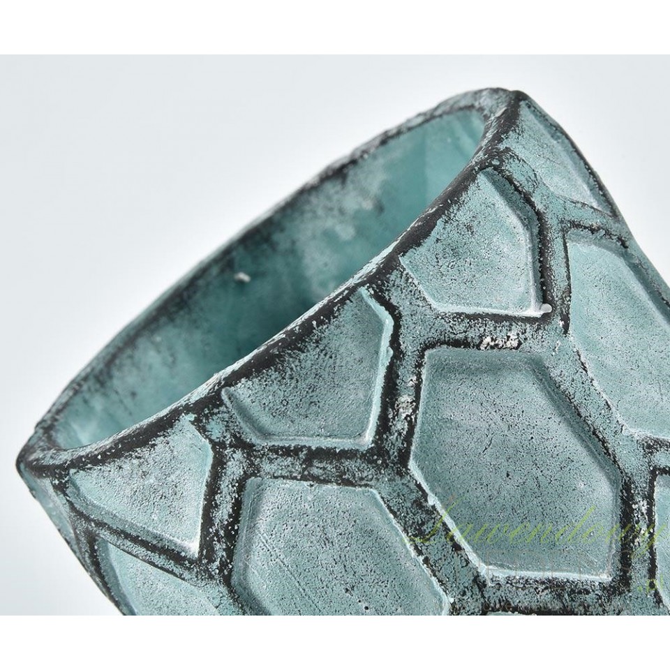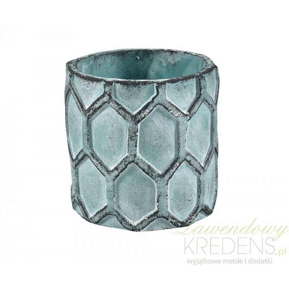 Ta postarzana osłonka Belldeco spełni marzenia wszystkich, którzy marzą o wyjątkowej oprawie dla donic z kwiatami. Osłonka jest prosta i ma błękitny kolor rozjaśniony białymi przetarciami. Wzór na osłonce to sześciany połączone w jeden wzór i prezentujące się jak plastry miodu. Osłonki prowansalskie od Belldeco możesz wykorzystać we wszystkich aranżacjach.