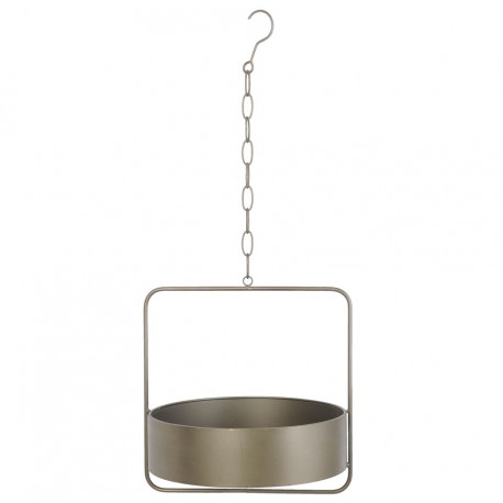 Metalowa osłonka do zwieszenia na łańcuchu, idealna dla miłośników surowych form. Na osłonkę składa się okrągła taca w metalowej ramie oraz łańcuch z hakiem. Styl industrialny wciąż urzeka prostotą i wieloma możliwościami zaaranżowania zarówno we wnętrzu jak i na zewnątrz. Postaw na osłonki na doniczki z metalu i ciesz się nimi przez wiele sezonów!