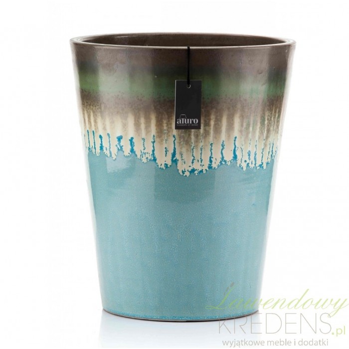 Osłonka aluro wykonana została z bardzo dobrego materiału jakim jest ceramika. Osłonka jest w kolorze błękitnym i ma oryginalne, kolorowe zacieki w górnej części, które ją wyrózniają. Osłonka to świetny pomysł by ozdobić i usztywnić roślinę a firma aluro stworzyła piękną donnicę, która Ci to ułatwi. Wybierz odpowiedni rozmiar i ciesz się tym uroczym dodatkiem!