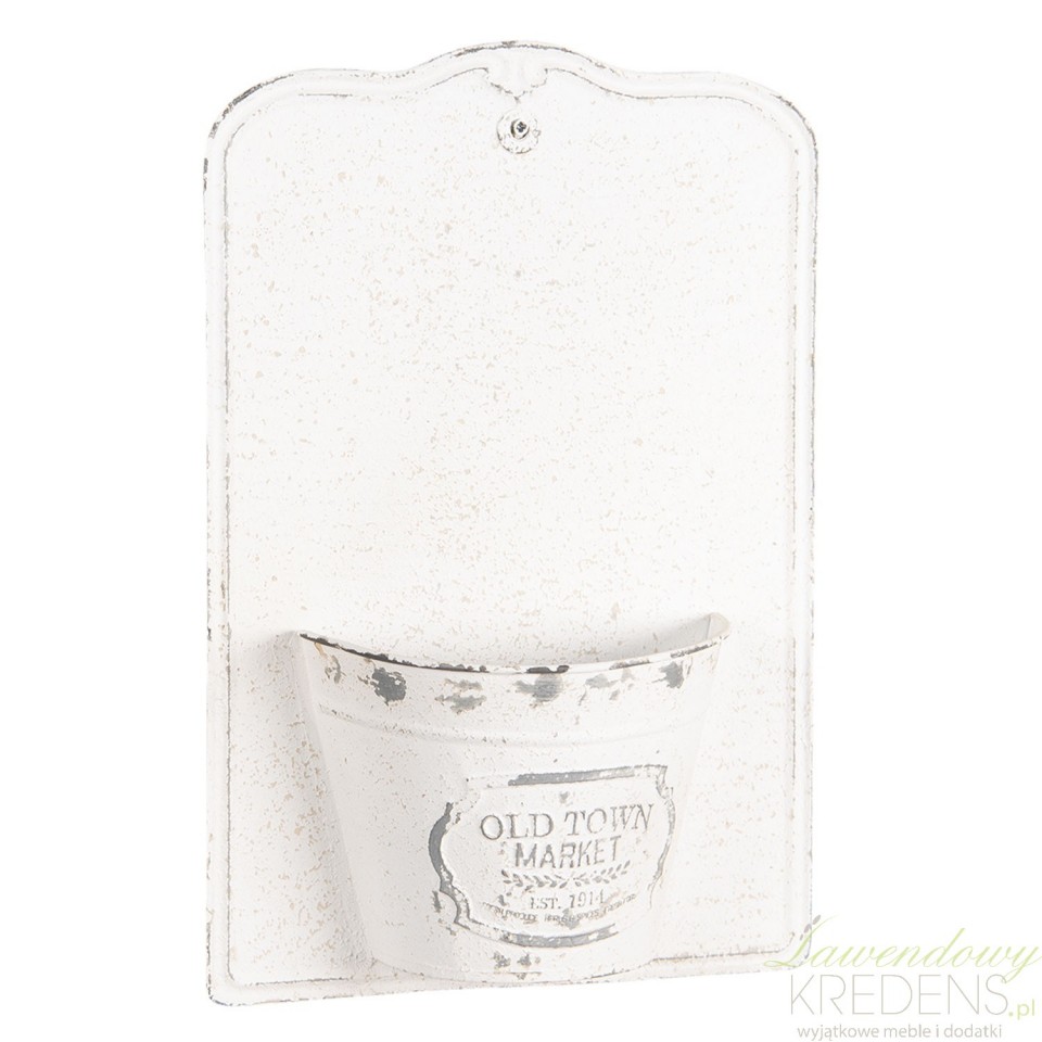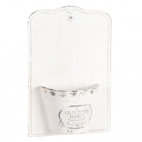 Ozdobny pojemnik ścienny będzie doskonałym rozwiązaniem na upiększenie każdego wnętrza. Może zostać wykorzystany jako kwietnik ścienny w prowansalskim salonie lub jako nietypowa i bardzo ciekawa ozdoba balkonowa. Kwietnik ma biały kolor, przecierane krawędzie oraz napisy. To najlepszej jakości ozdoba dla każdego z Twoich kwiatów.