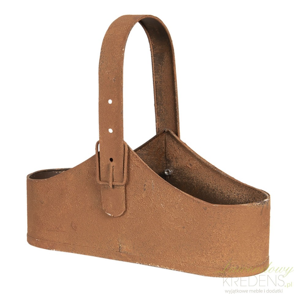 Rdzawa osłonka wykonana jest z metalu - materiału odpornego na uszkodzenia i niesprzyjające warunki atmosferyczne. Osłonka jest podłużna, ma rdzawy kolor i poręczny uchwyt w kształcie paska z dziurkami i zapinką. Jesteśmy przekonani, że ten model będzie prezentował się zniewalająco w każdej przestrzeni. Wytrzymałe właściwości jakie cechują rdzawe osłonki od Clayre&Eef gwarantują bezpieczeństwo podczas ekspozycji różnego rodzaju roślin.
