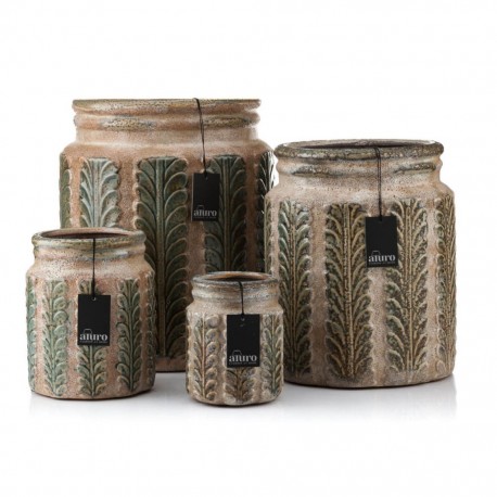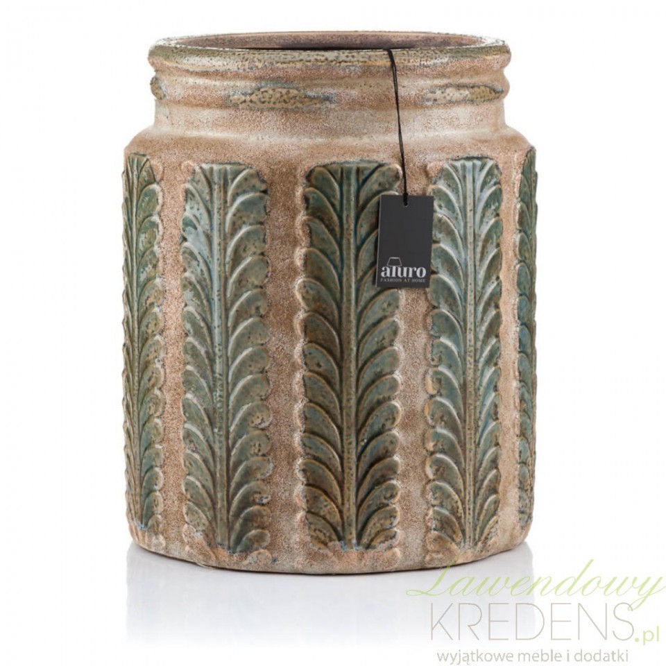 Osłonka Lunaria to zachwycający dodatek, zaprojektowany przez producenta Aluro. Do jej wykonania wykorzystano architektoniczny cement, dzięki czemu doniczka jest trwała, ma charakterystyczne nierówności i pięknie wygląda w skandynawskich aranżacjach. Na powierzchni osłonki Aluro naniesiony został zielony wzór przypominający liście paproci. Wszelkie kwiaty i rośliny wyglądają w niej niecodziennie pięknie.