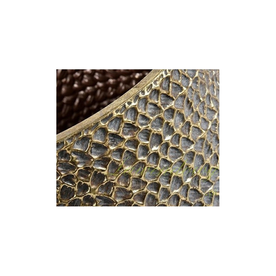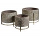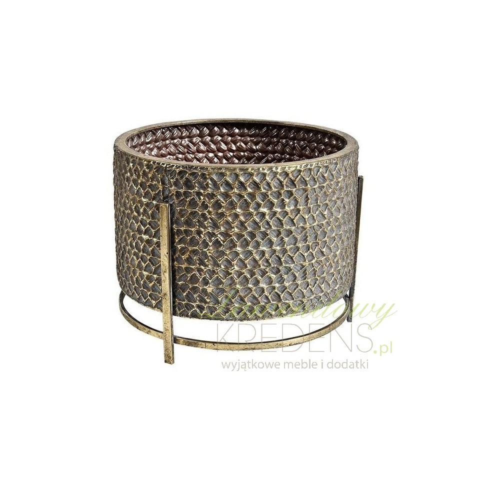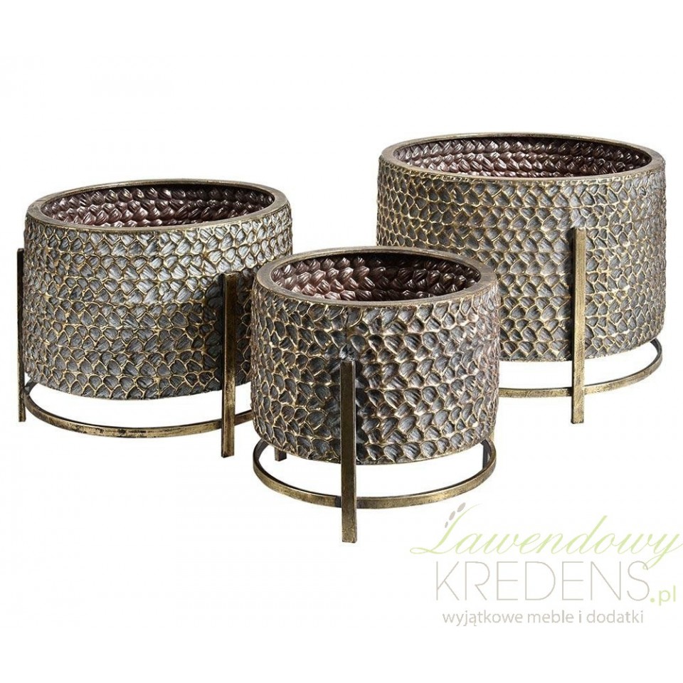 Osłonki na kwiaty Belldeco Gold Line to zestaw trzech osłonek na metalowych stojakach w kolorze starego złota. Osłonki te w połączeniu z kwiatami, kaktusami lub świeżymi ziołami będą wspaniale wyglądały ustawione na parapecie lub na otwartej przestrzeni w ogrodzie. Struktura osłonek z drobnymi wypukłościami jest jedyna w swoim rodzaju, a drobne złocenia sprawiają, że przyciąga spojrzenia. Sklep Belldeco to wyjątkowe miejsce, w którym znajdziesz niepowtarzalne i praktyczne dodatki do pokoju.