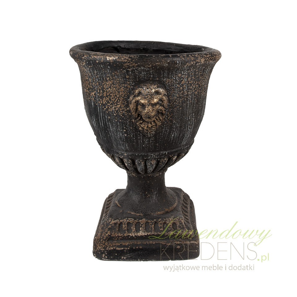 Nowość w naszym sklepie - osłonka na doniczkę puchar z lwem - wyjątkowy element dekoracyjny od Clayre & Eef, który doda elegancji i stylu Twojemu wnętrzu. Ta czarno-złota osłonka wykonana z kompozytu to połączenie wyjątkowego wzornictwa i wysokiej jakości materiałów, które przyciągną uwagę każdego miłośnika pięknych detali.