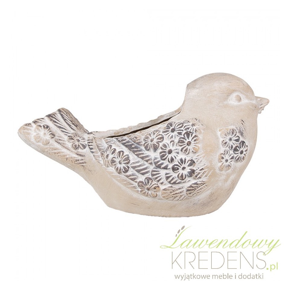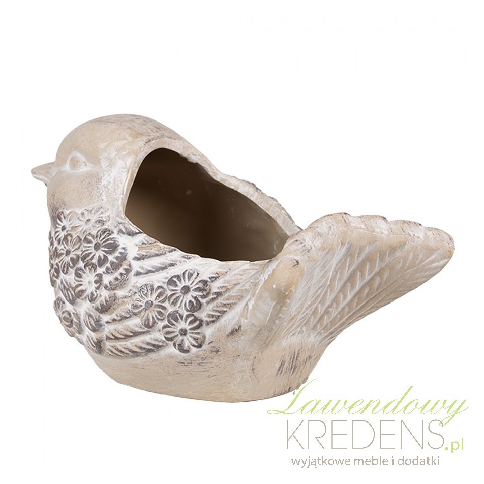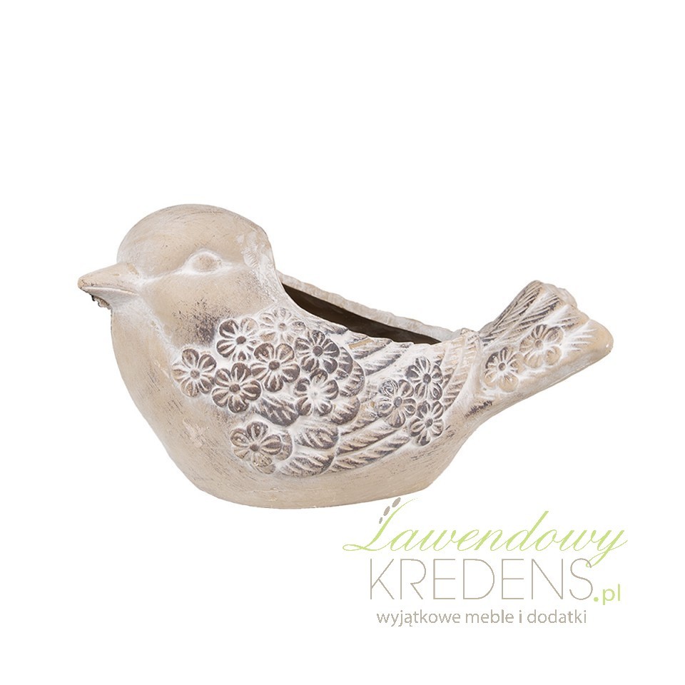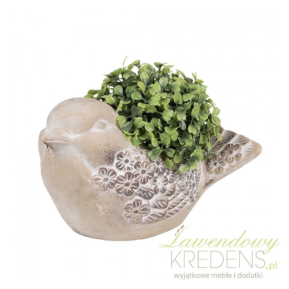 Betonowa osłonka w neutralnym kolorze, posiadająca kształ ptaszka. Piękne osłonki, w któych każda roślina poczuje się wyjątkowa.