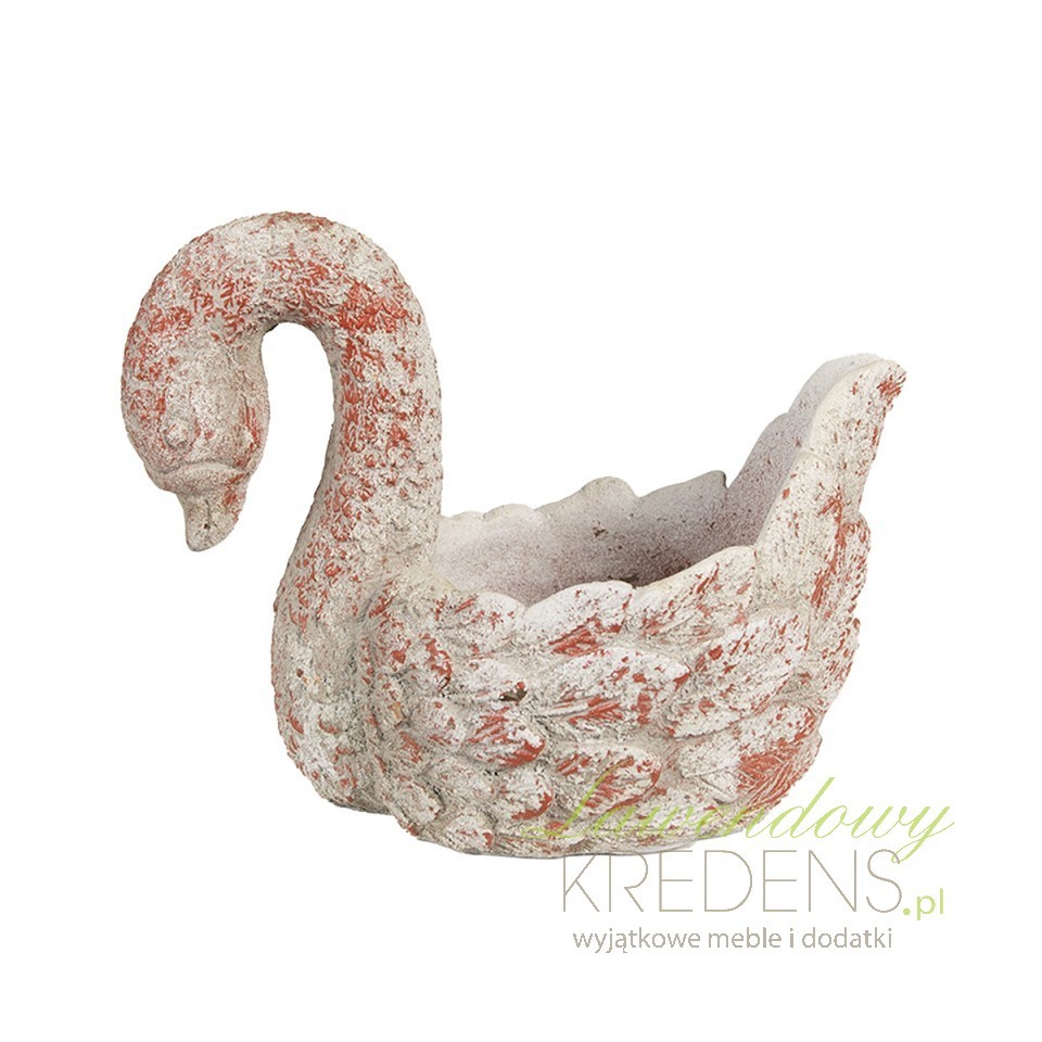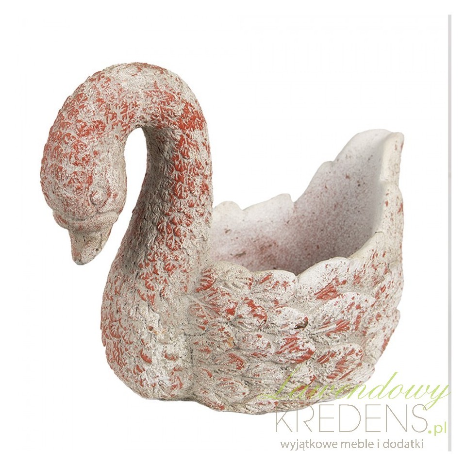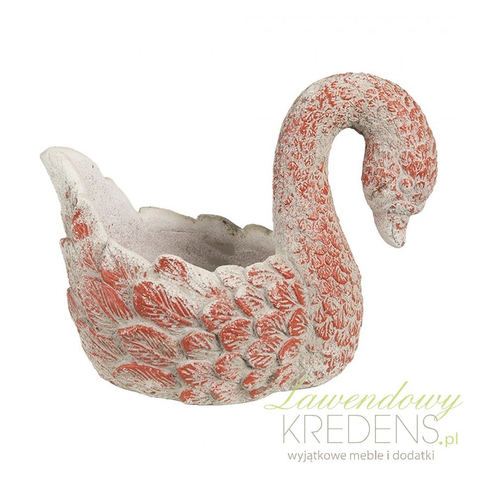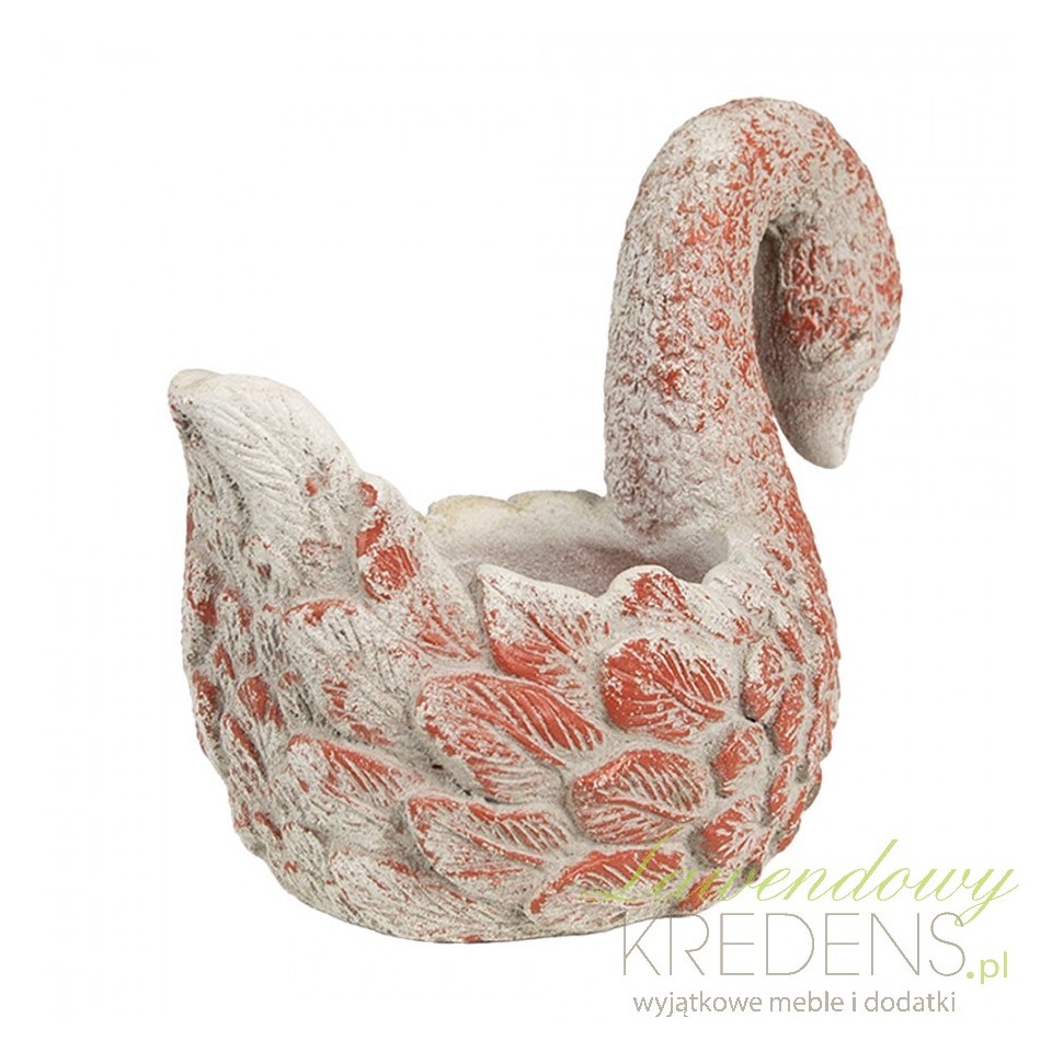 Osłonka w kolorystyce szaro - pomarańczowej, znajdzie swoje miejsce w każdej aranżacji. Kształt łabędzia przykuje uwagę i będzie ciekawym dodatkiem na przykład dookoła oczka wodnego na ogródku.