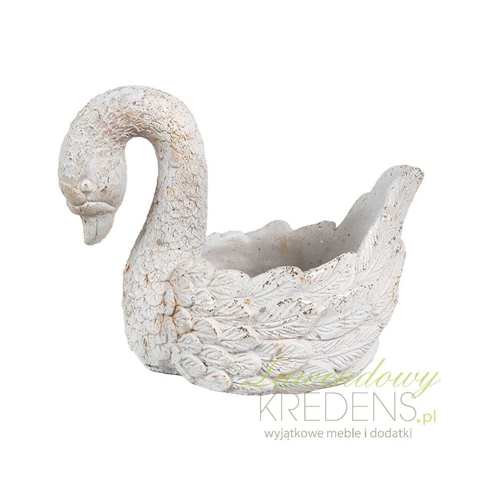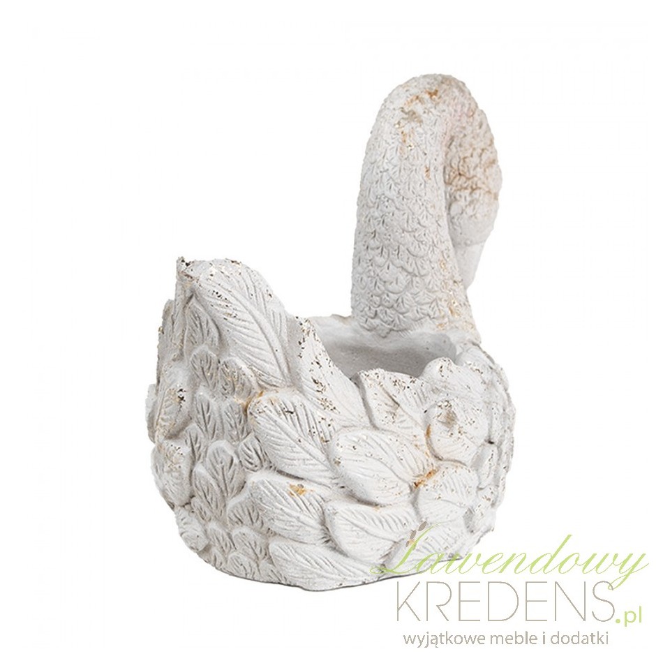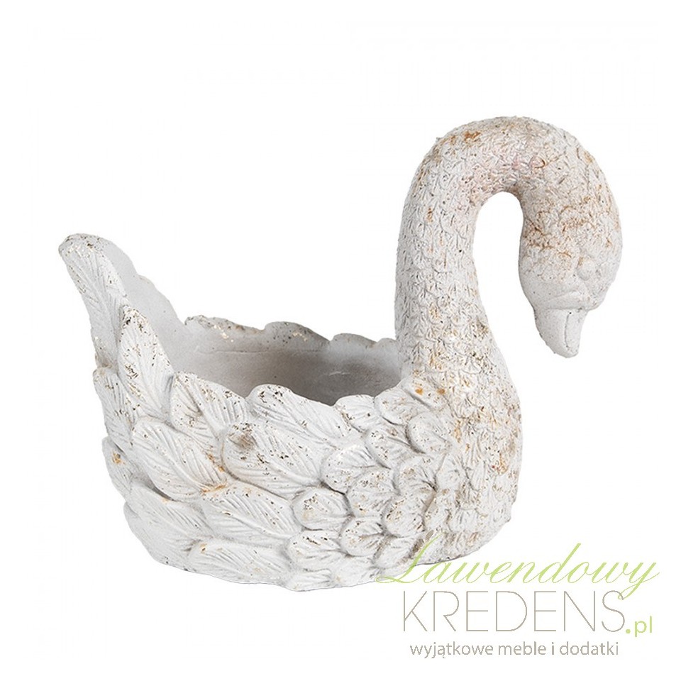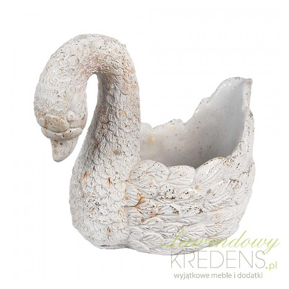Jasna osłonka na doniczkę w kształcie łabędzia to subtelna dekoracja, która doda elegancji każdemu wnętrzu lub ogrodowi. Jej delikatne detale i harmonijna forma tworzy przyciągający wzrok akcent dekoracyjny.