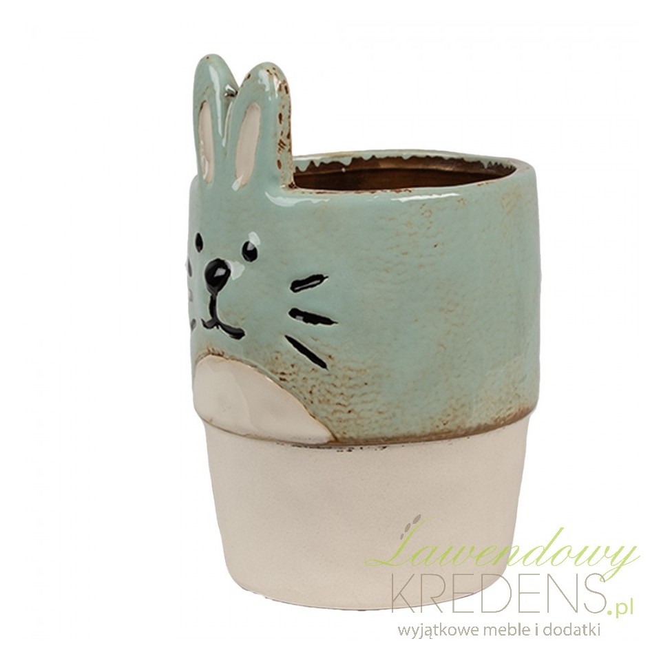 Osłonka przypominająca króliczka to doskonały dodatek, który wnosi do wnętrza odrobinę zabawy i uroku. Jej delikatne detale, takie jak uszy i słodki pyszczek, sprawiają, że idealnie pasuje do wiosennych aranżacji.