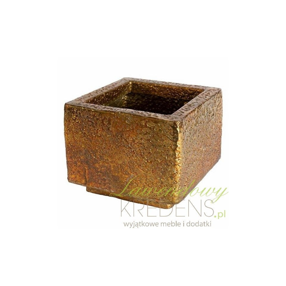 Elegancka osłonka na doniczkę wykonana z metalu w kolorze mosiądzu, a jej kwadratowy kształt dodaje jej uroku. Idealnie sprawdzi się w każdym salonie, więc będzie także doskonale trafionym prezentem.