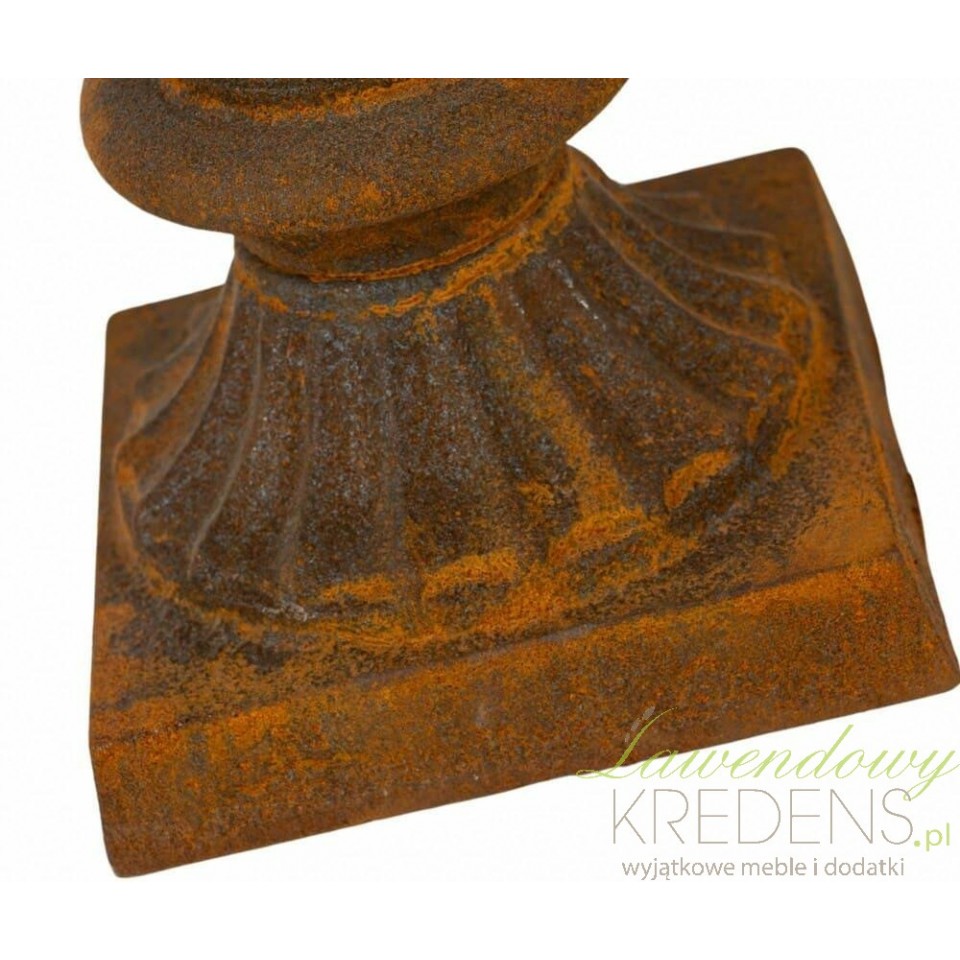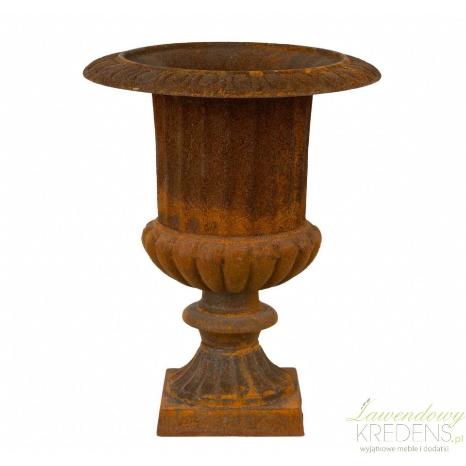 Metal jest materiałem trwałym, jednak stała ekspozycja na wilgoć i mróz może z czasem pogłębić proces korozji. Aby zachować walory estetyczne naczynia, sugerujemy chowanie go pod zadaszenie w okresie zimowym.