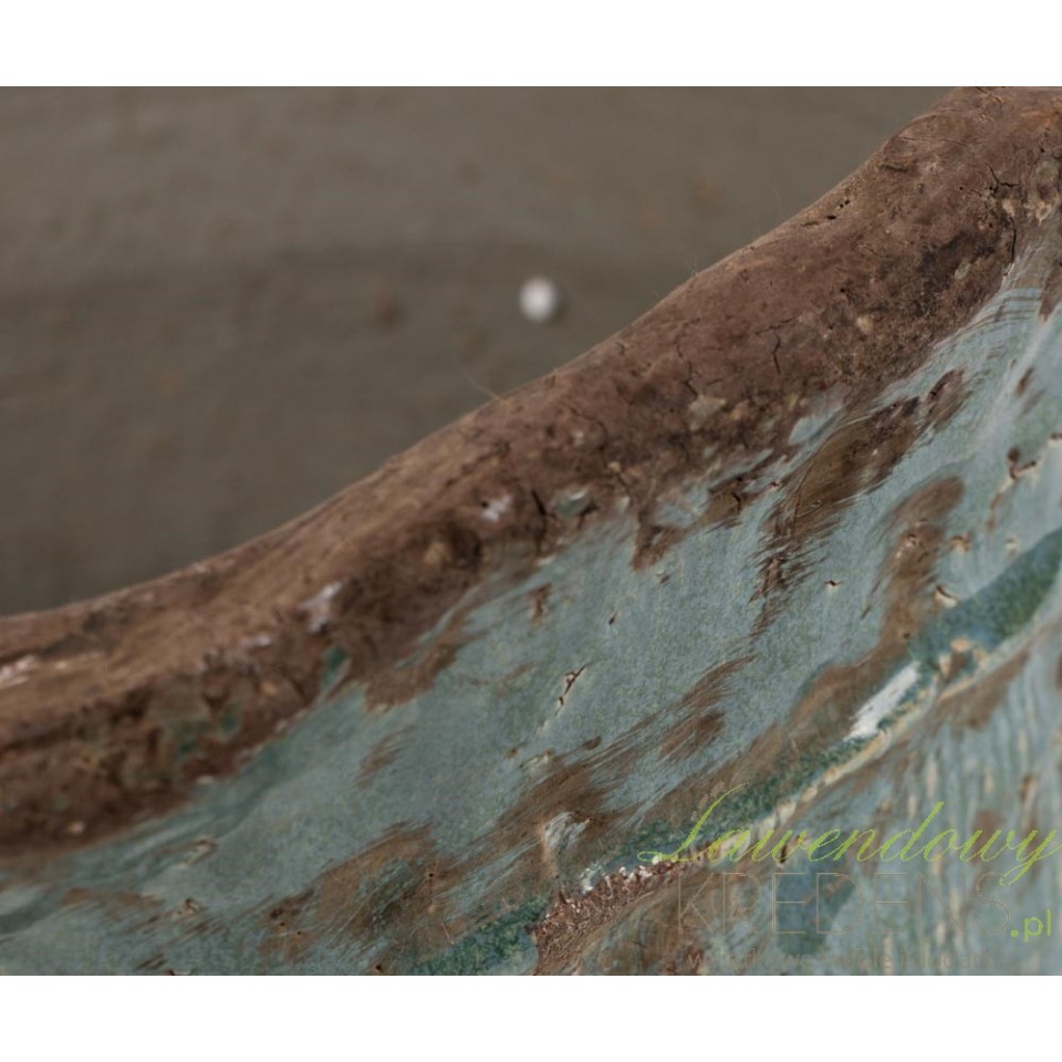 Stosuj miękką ściereczkę i letnią wodę. Unikaj agresywnych środków i szorstkich gąbek – patynowane, postarzane wykończenie najlepiej zachowuje się przy delikatnej pielęgnacji.Czy misa nadaje się na mróz i całoroczny taras?