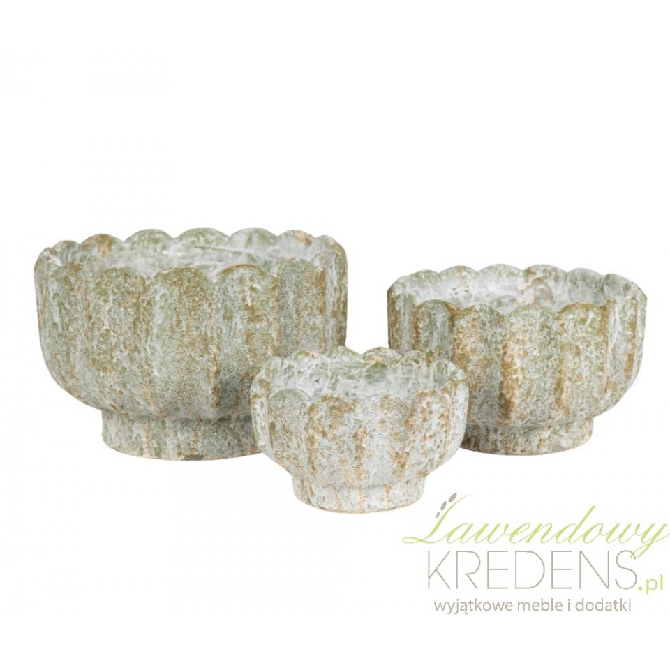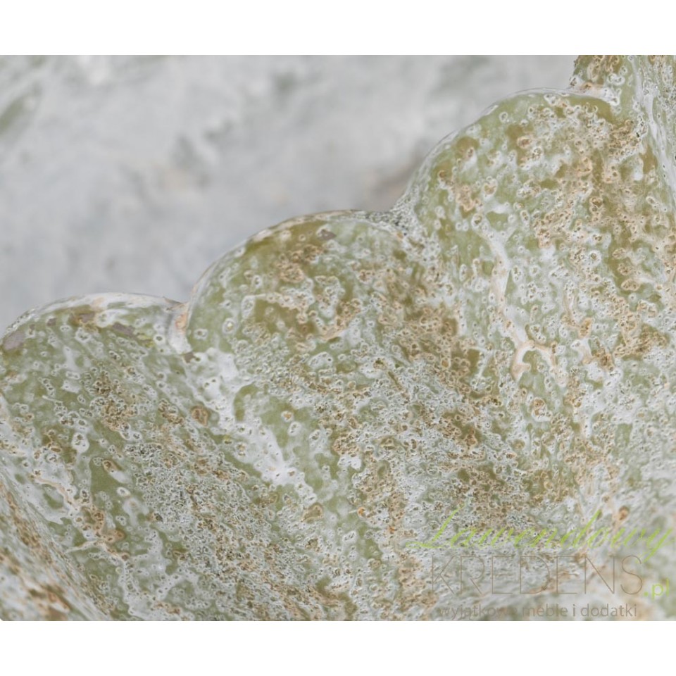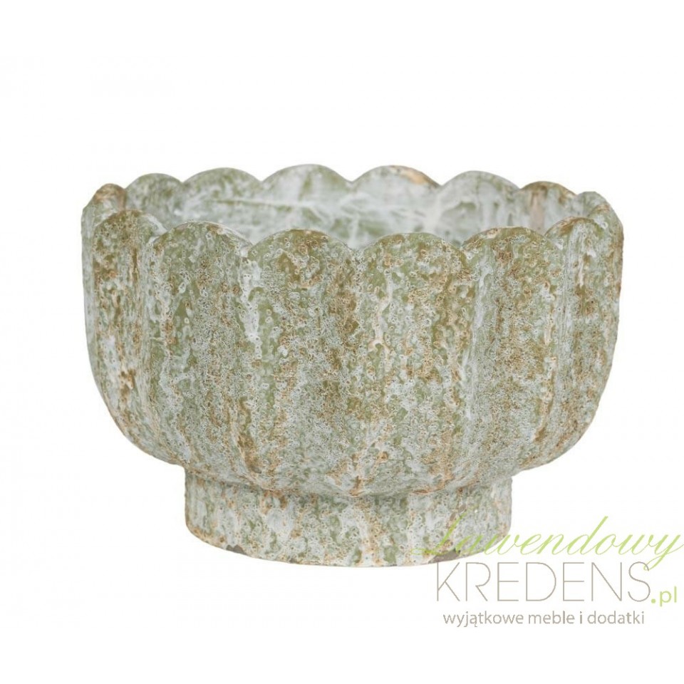 Szary kolor nie jest tu „płaski” – powierzchnia ma postarzaną teksturę z wyczuwalną patyną i mineralnym przetarciem, które dobrze łączy się z drewnem, lnem, rattanem i czarnym metalem. Okrągły kształt oraz falowany rant dodają miękkiej linii, dzięki czemu naczynie pasuje zarówno do rustykalnych aranżacji, jak i do surowego loftu. Postaw je na komodzie w holu, na stole ogrodowym albo przy wejściu do domu – od razu buduje wrażenie dopracowanej stylizacji.Wymiary 20 cm i forma kielicha: idealna baza pod rośliny i kompozycje