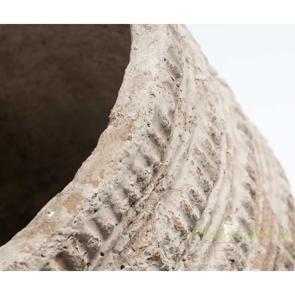 Osłonki na doniczki stylizowane na naczynia antyczne, to niebanalne przedmioty w kremowo-brązowym kolorze.