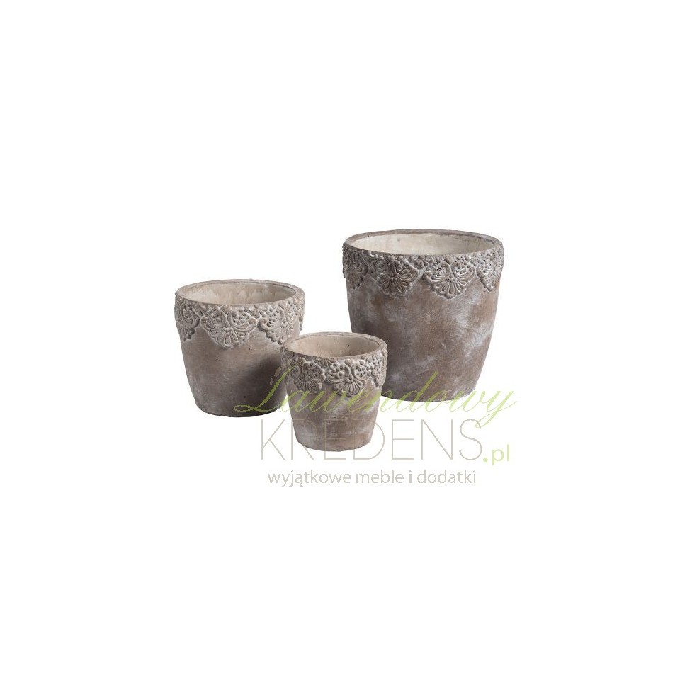 Szara, ozdobna osłonka prowansalska firm Belldeco z przepięknym ornamentem u góry doniczki!
