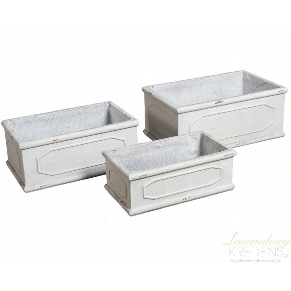 Duże osłonki stanowią nie tylko praktyczne rozwiązanie do domu, ale również świetną dekorację. Podłużne osłonki mają prostokątny kształt, który doskonale wtapia się w otoczenie. Duża osłonka do kwiatów firmy Belldeco wykonana jest z cementu i włókna szklanego. Ma charakterystyczny wzór, który znajduje się dookoła donicy i przetartą farbę.