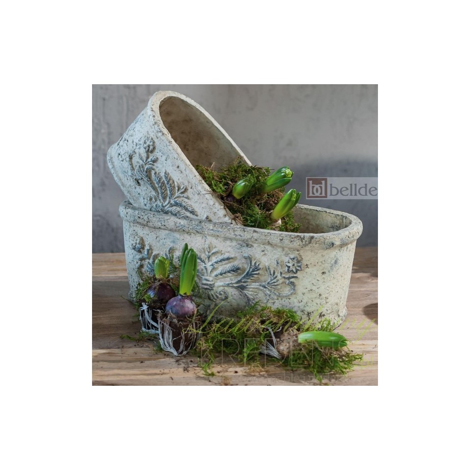 Podłużne doniczki Belldeco w stylu prowansalskim o surowym wykończeniu. Donice nie są szkliwione, mają chropowatą powierzchnię i niejednolity kolor. Doskonale sprawdzą się we wnętrzu jak i w ogrodzie, na tarasie lub balkonie.