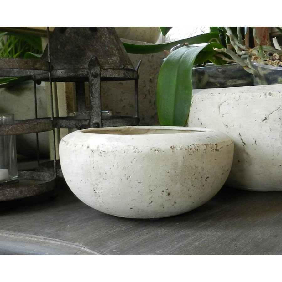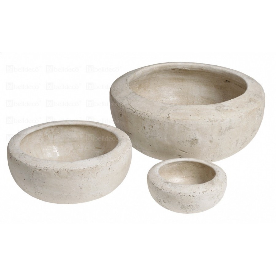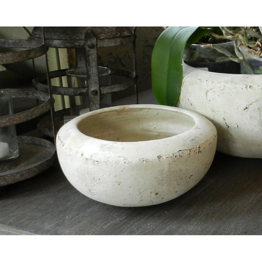 Misy Casa Creme marki Belldeco o jasnym, niejednolitym kolorze. Idealne jako misy na owoce, orzechy, lub jako donice w stylu prowansalskim.